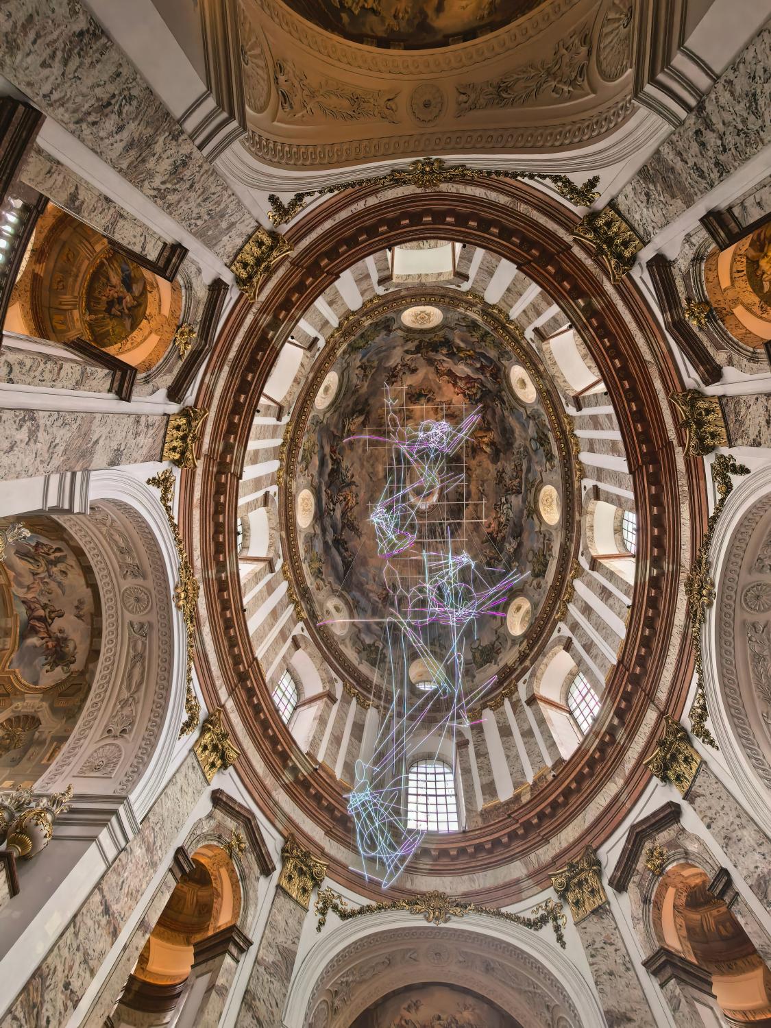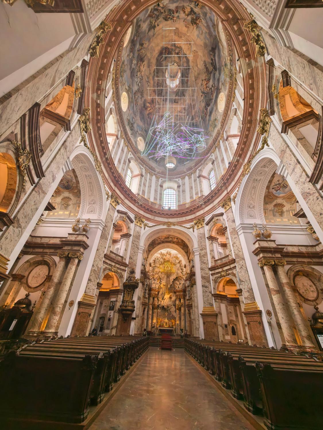 圣卡尔教堂的穹顶高达 72 米,如此宏伟的高度与教堂整体巴洛克风格的华丽感相呼应,从内部仰望,能充分感受到空间的庄严以及视觉上的震撼力。