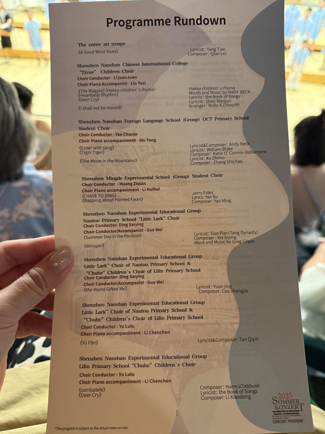 同时拿到音乐会节目单: