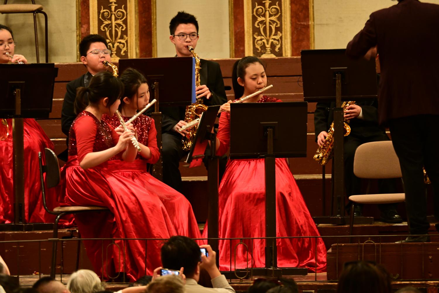 衣襟的长笛,位置正对着观众席,对拍照非常有利。