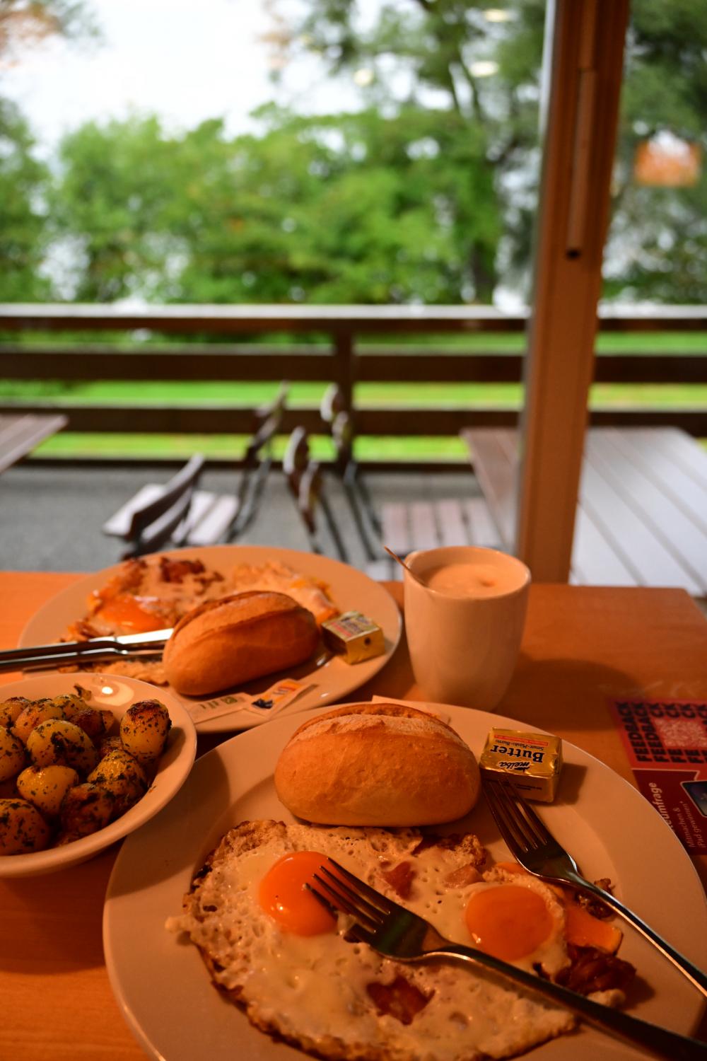 经过一处湖边,发现餐厅,停下来寻早餐。