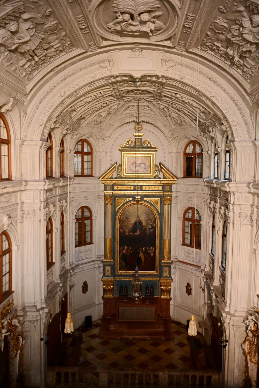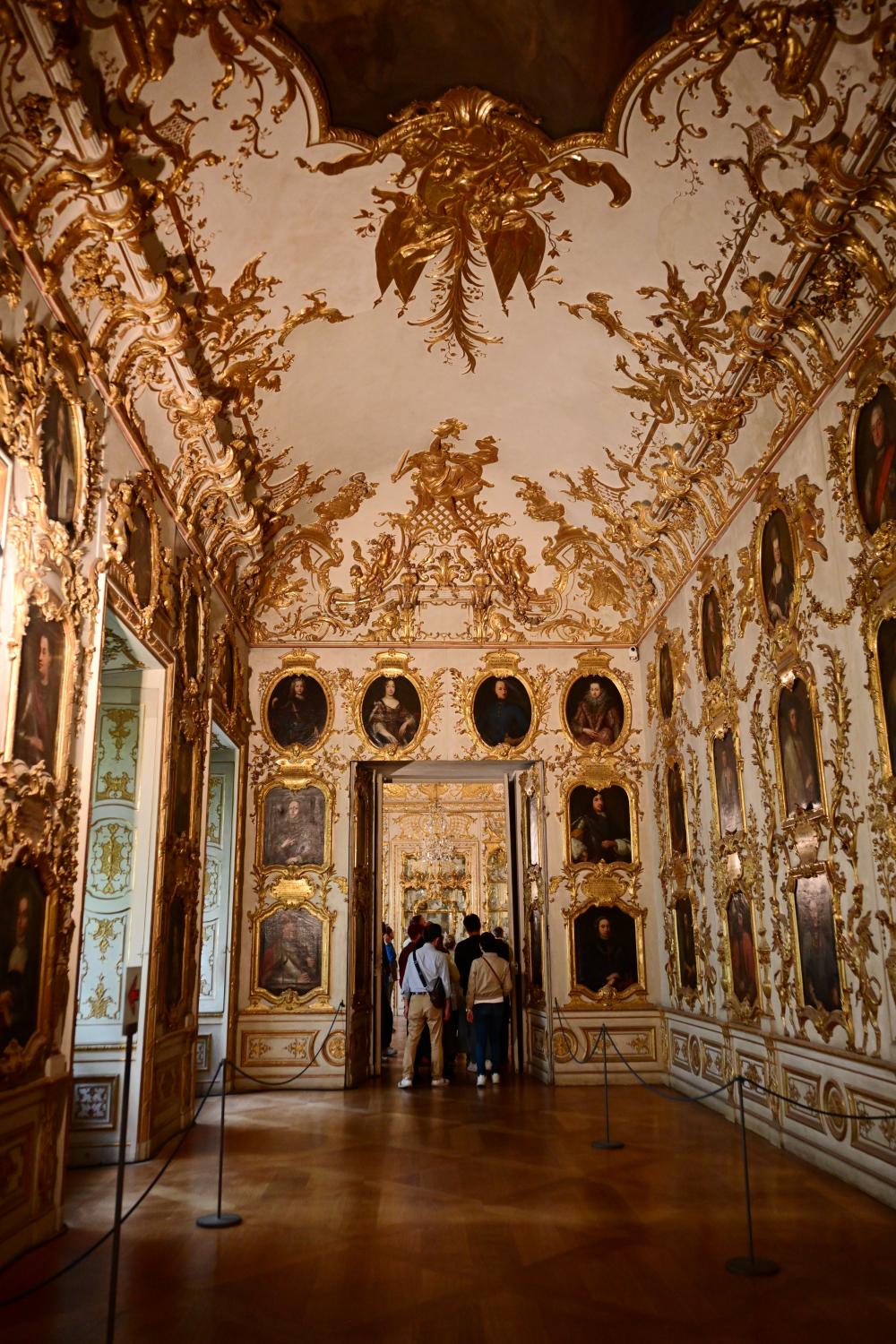 进入先祖画廊,陈列着上百位巴伐利亚历代皇室成员的镀金油画像,迅速感受到维特尔斯巴赫家族的历史厚重感。