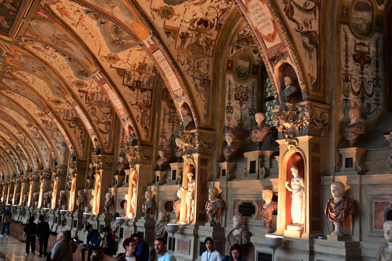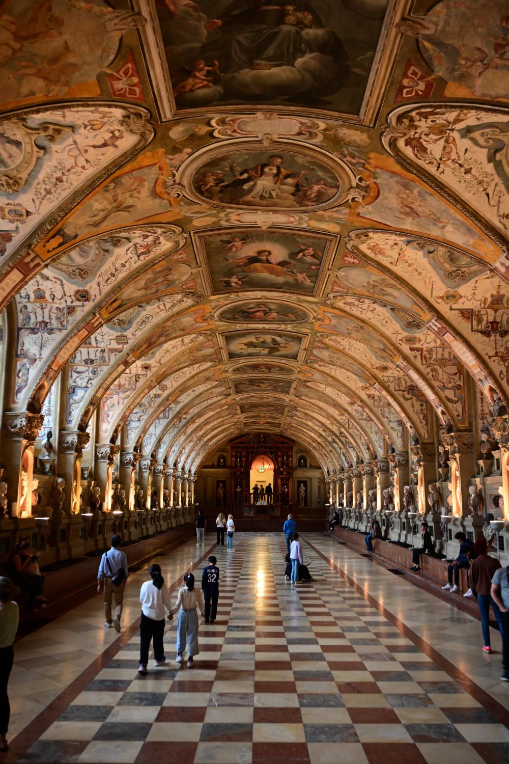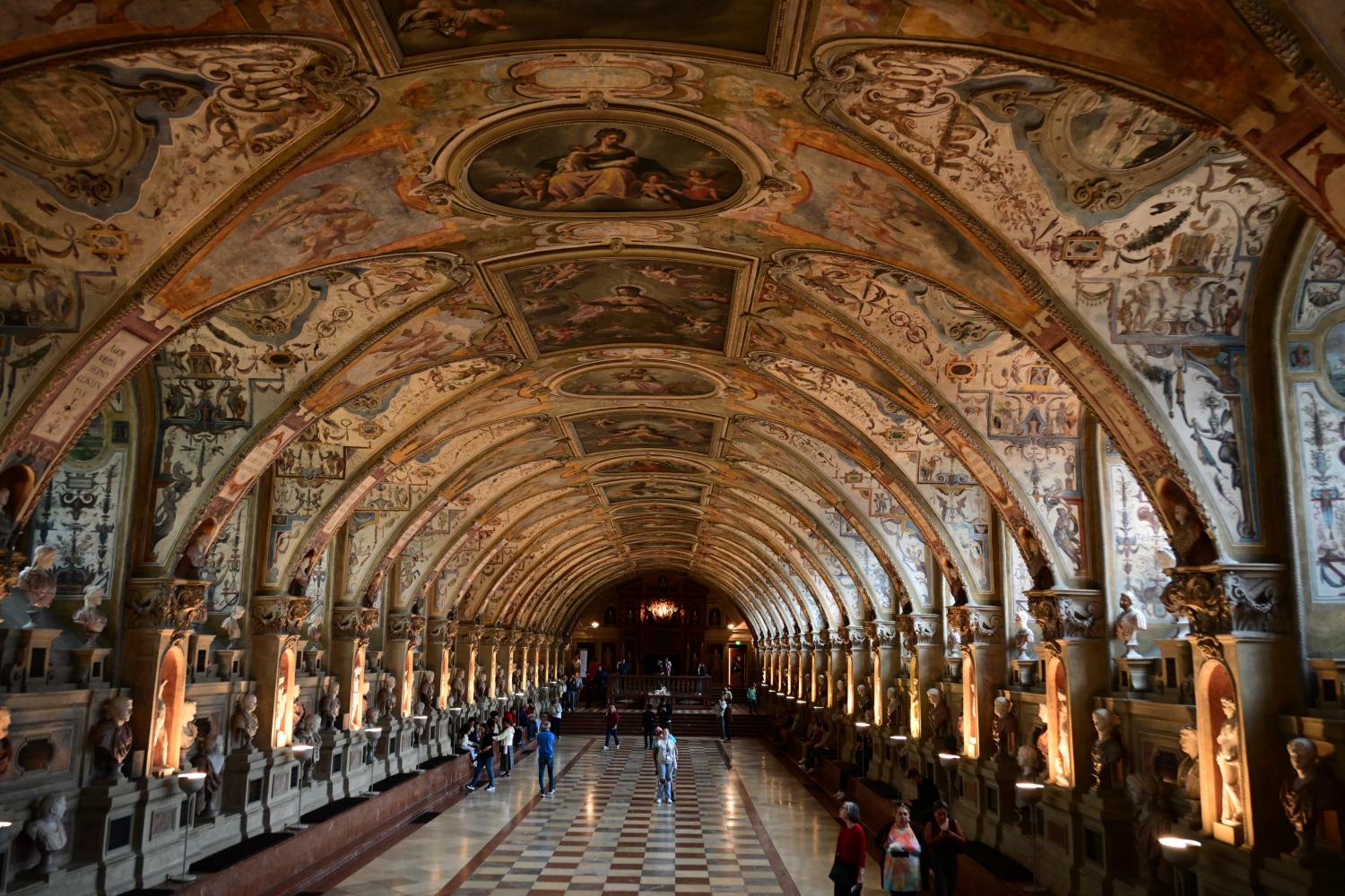 16世纪,维特尔斯巴赫家族成为神圣罗马帝国选帝侯,权力与财富的积累,推动着王宫进入首次大规模扩建。1550年至1571年,选帝侯阿尔布雷希特五世主导改造,核心工程是建造安蒂库 arium。这是一座长69米、宽12米、高13米的大厅,是阿尔卑斯山以北最大的文艺复兴风格建筑,墙面采用意大利卡拉拉大理石装饰,穹顶绘制古罗马神话主题壁画,最初用于陈列家族收藏的古罗马雕塑与青铜文物,后来成为王室举办盛大宴会、接待外国使节的核心场所。同期,阿尔布雷希特五世还增设了绘画陈列室,收藏丢勒、霍尔拜因等北方文艺复兴名家的作品,让王宫从 权力据点转向文化展示空间。