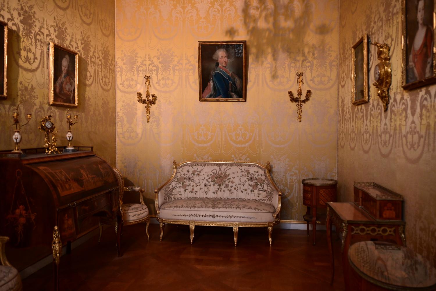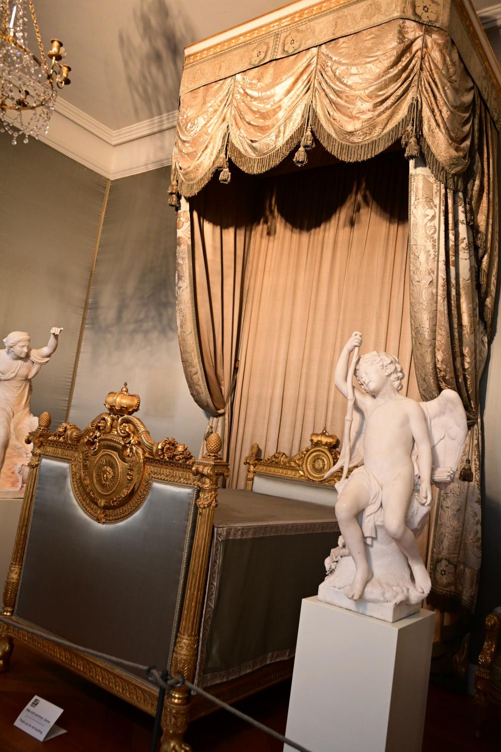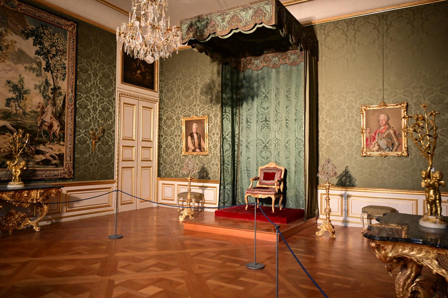 国王寝宫:位于国王殿二层,空间分为卧室与更衣室,卧室采用浅蓝色丝绸墙面,搭配白色洛可可风格家具,床品为手工刺绣的花卉图案;更衣室内设有多组胡桃木衣柜,用于存放国王的朝服与日常服饰;如今寝宫按1835年的物品清单复原,展示王室的日常生活场景。