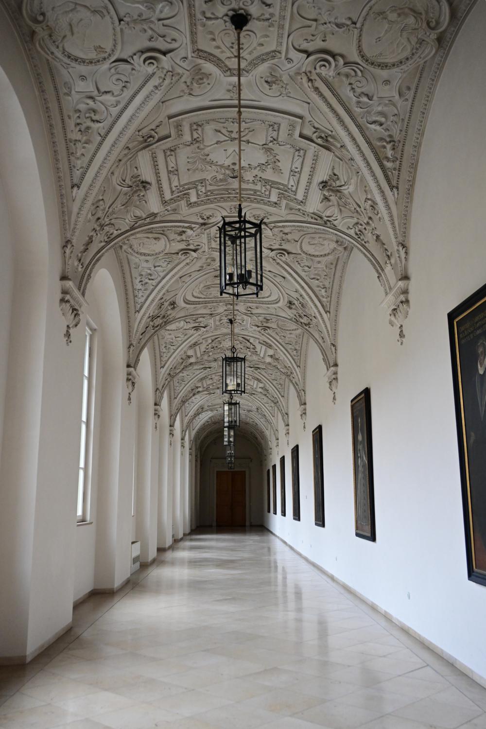 祖先画廊:17世纪洛可可风格长廊,墙面悬挂121幅维特尔斯巴赫家族成员肖像,从13世纪的路德维希二世到19世纪的路德维希一世,部分肖像由德国巴洛克画家约翰・巴普蒂斯特・齐默尔曼创作;画廊尽头设有家族徽章浮雕,象征家族血脉延续。