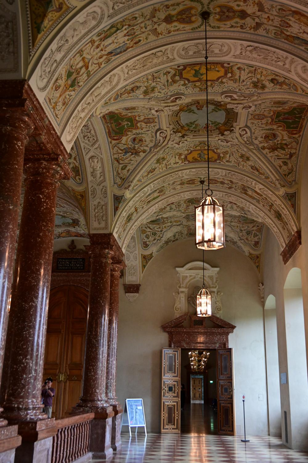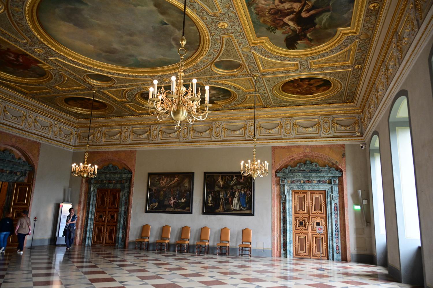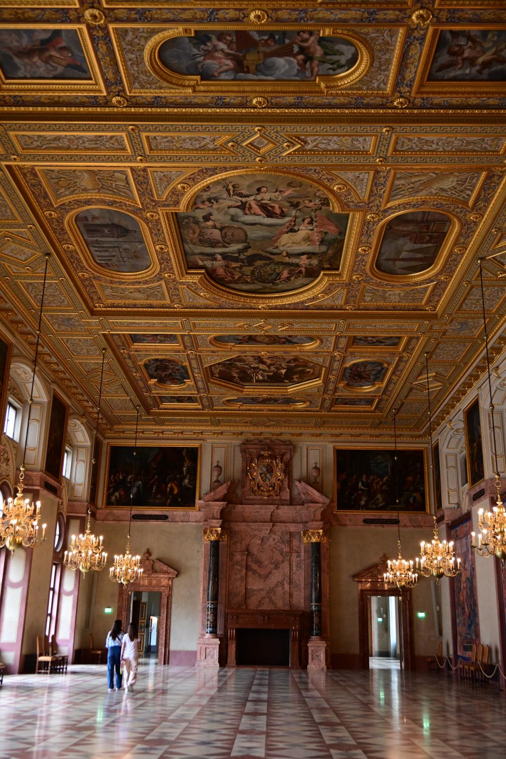 安蒂库 arium 大厅:长69米的文艺复兴风格大厅,最初为王室文物陈列室,19世纪后改为王室宴会厅,如今作为王宫博物馆的序厅,陈列着16世纪的意大利雕塑;大厅穹顶壁画1945年被毁,1950年代依据残片复刻,主题为古罗马神话中的酒神节庆典。
