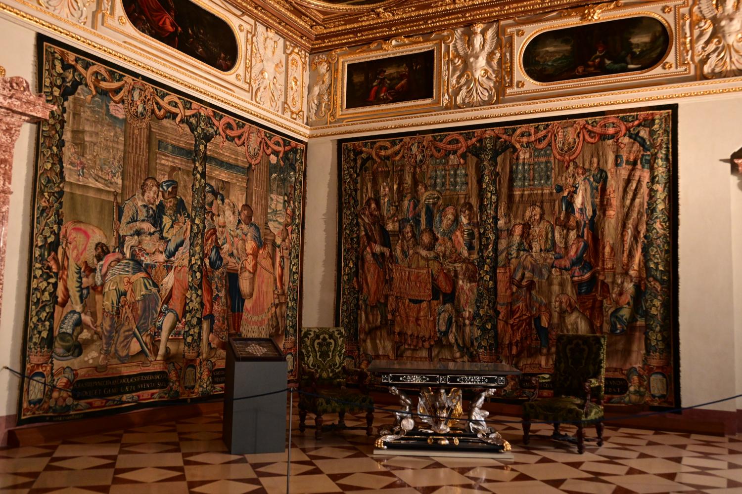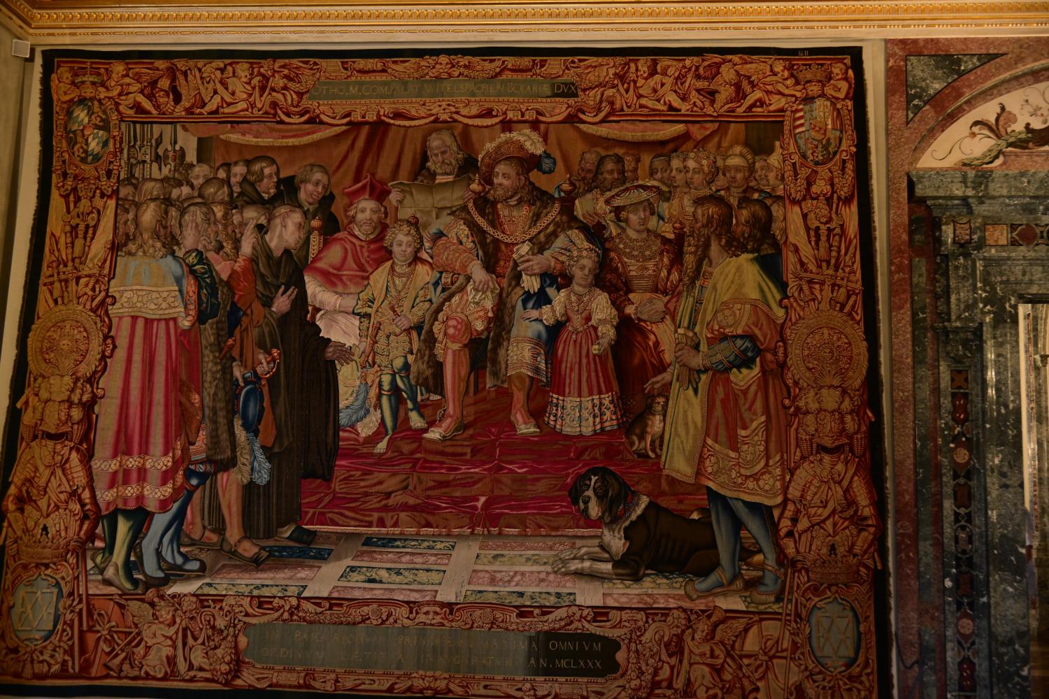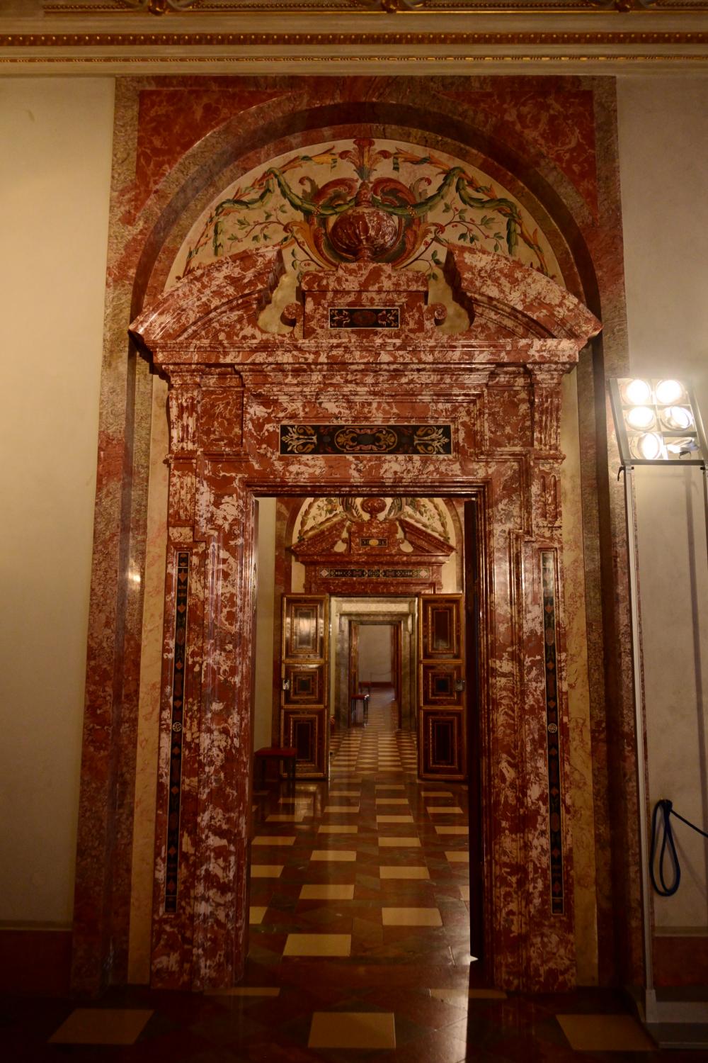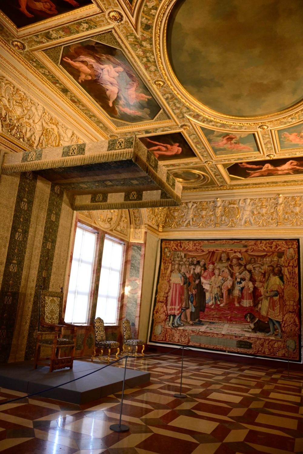 安蒂库 arium 大厅:长69米的文艺复兴风格大厅,最初为王室文物陈列室,19世纪后改为王室宴会厅,如今作为王宫博物馆的序厅,陈列着16世纪的意大利雕塑;大厅穹顶壁画1945年被毁,1950年代依据残片复刻,主题为古罗马神话中的酒神节庆典。
