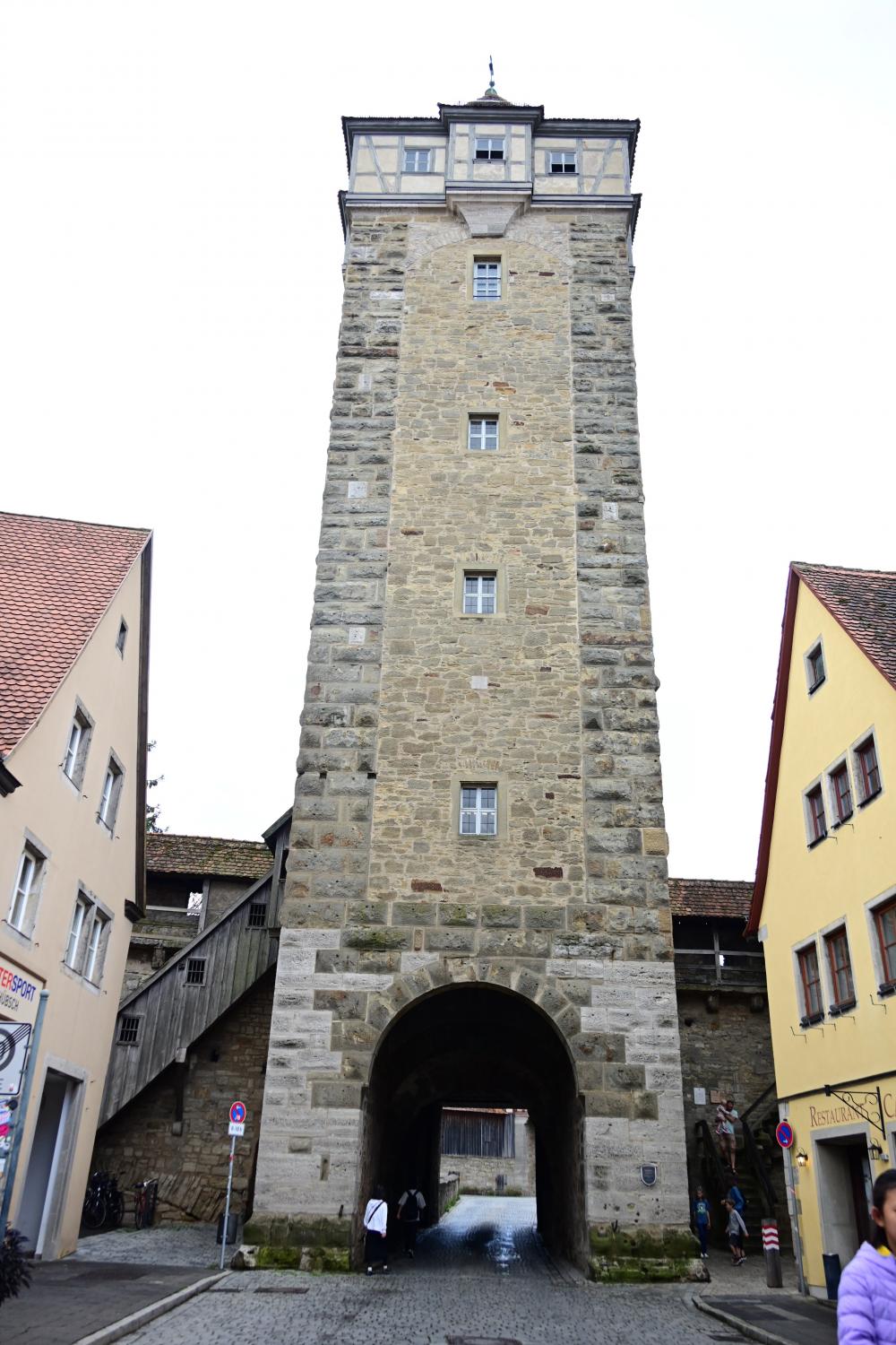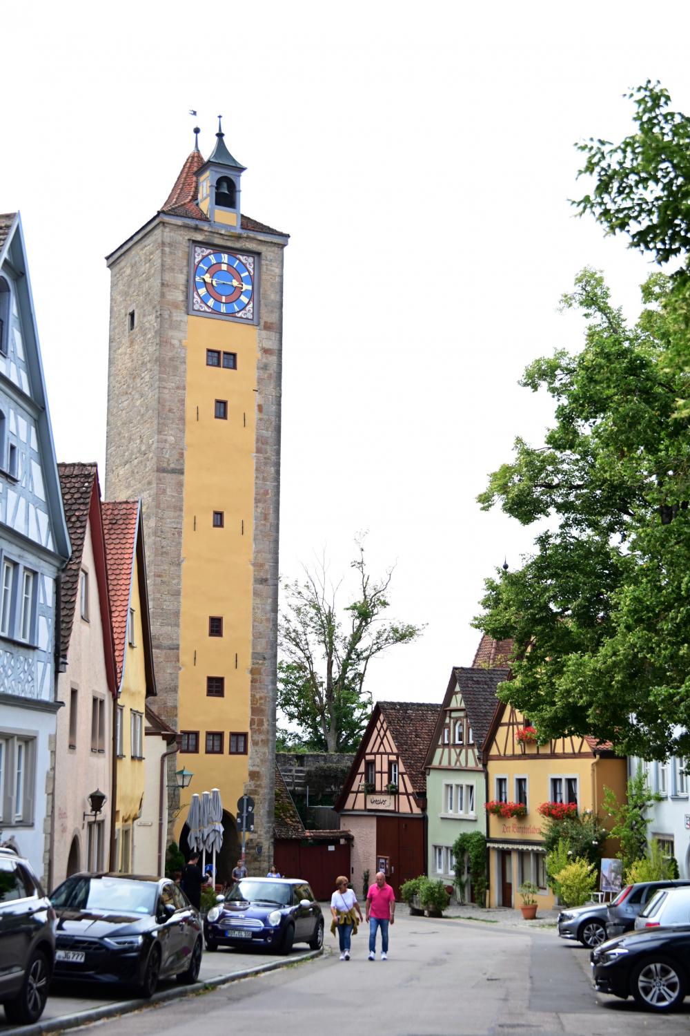 看到的黄色建筑是塞贝尔塔,是罗腾堡古城墙的重要城门塔楼之一,兼具防御功能与景观价值。塔楼外观以明亮的黄色为主,搭配醒目的大型钟表,是古城的标志性建筑之一,可登顶塔楼,从更高的角度俯瞰罗腾堡这座中世纪风格古城的街巷与红屋顶景观。