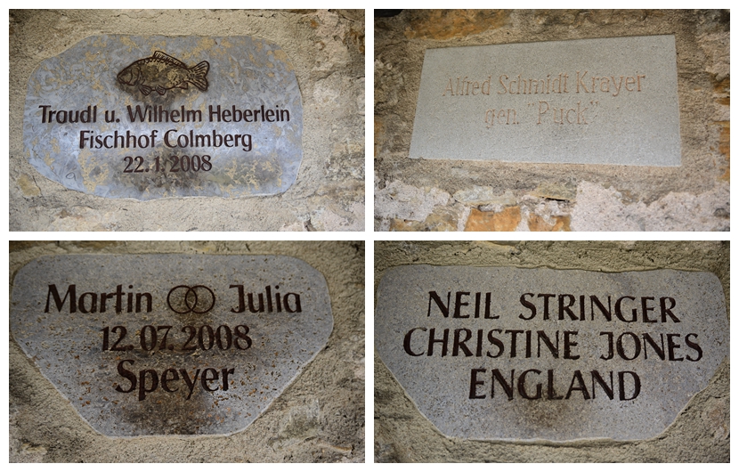 这些留名大概与修复捐赠有关,罗腾堡城墙在近现代尤其是近40年,经历过逐步修复,为感谢和纪念那些为城墙修复工程提供资金、物资或其他支持的捐赠者,会将他们的名字或相关纪念名称刻在城墙的标牌上。无论是个人、家庭,还是来自其他城市甚至其他国家的捐赠者,只要参与了城墙的修复捐赠,就可能获得在城墙上留名的机会,以此认可与纪念他们对保护这座中世纪历史遗产的助力。