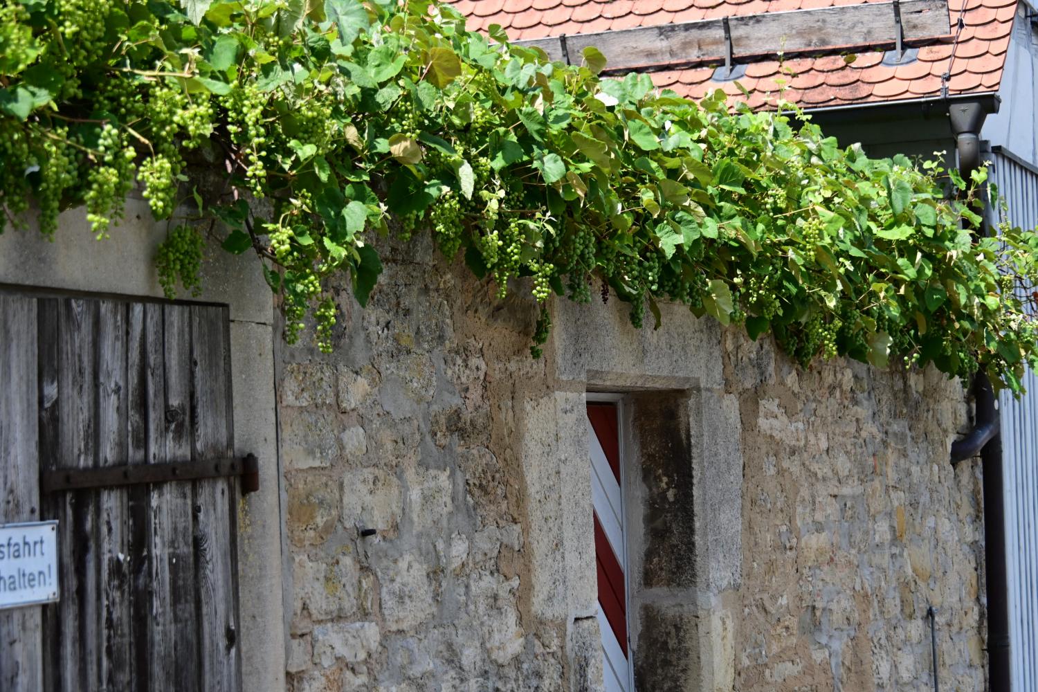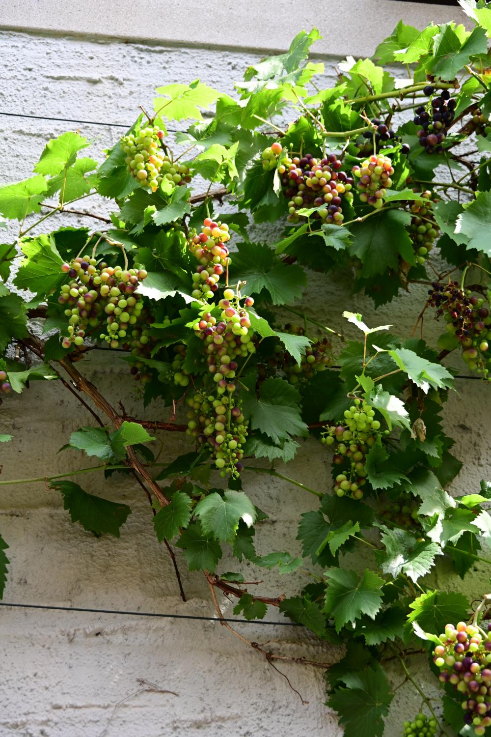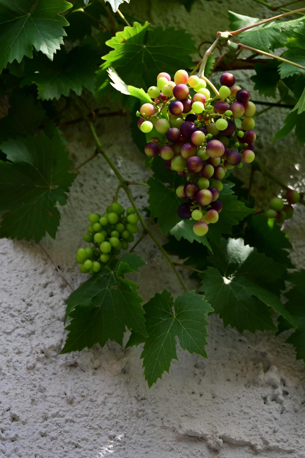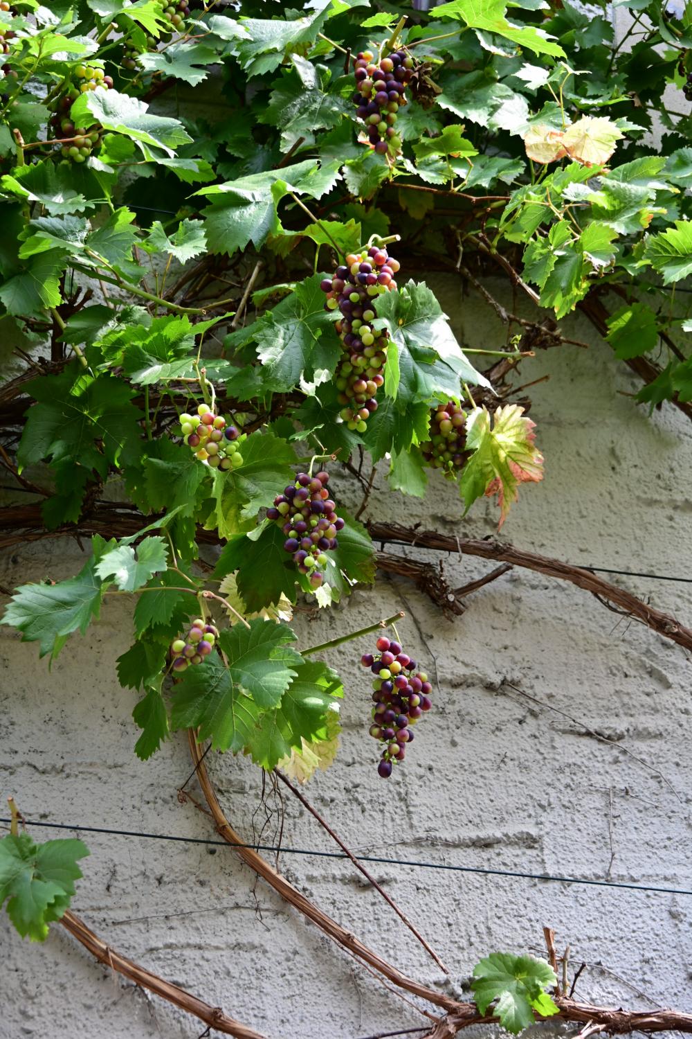 路过的人家墙头,被葡萄坠满,太好看了。