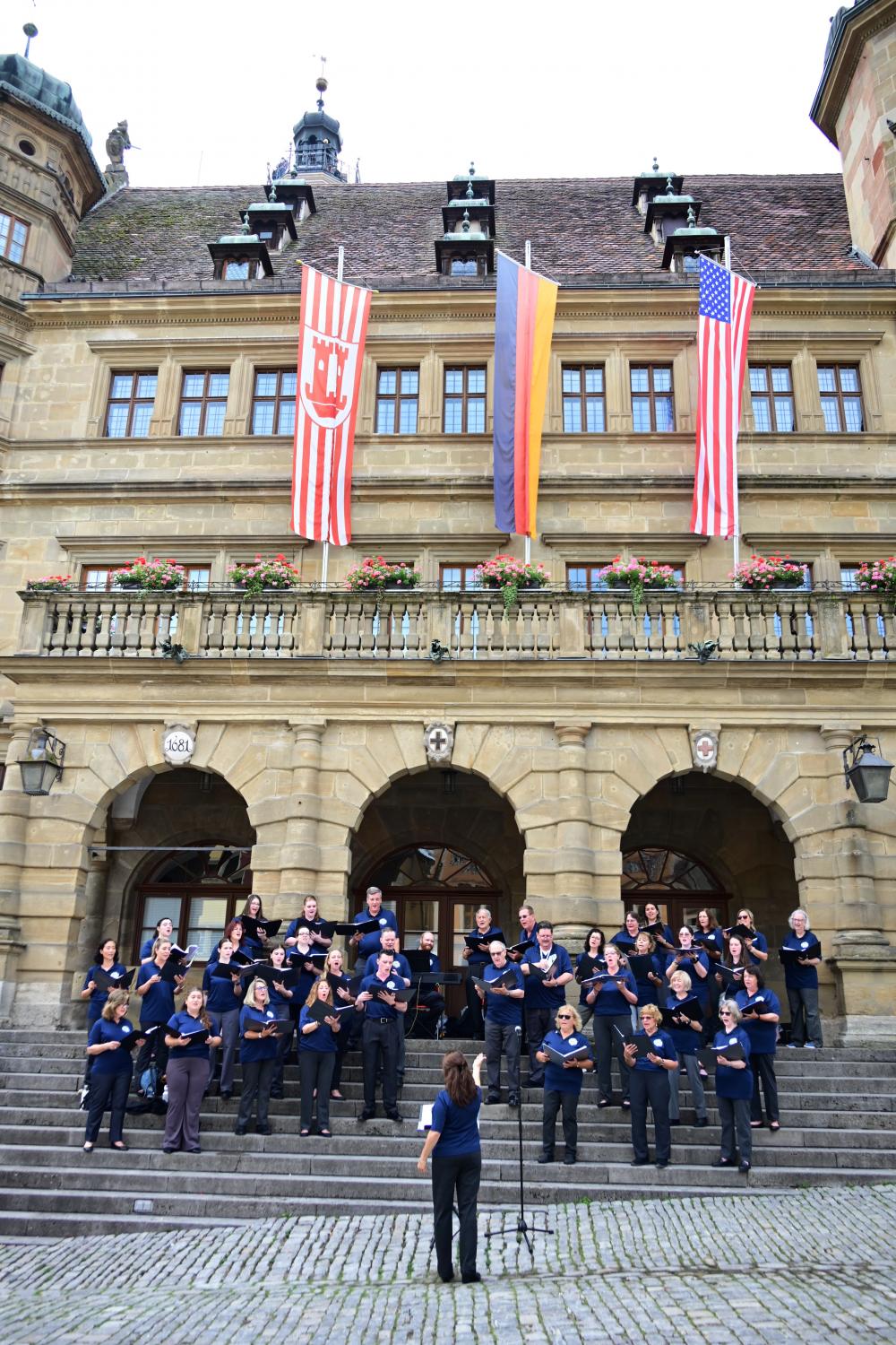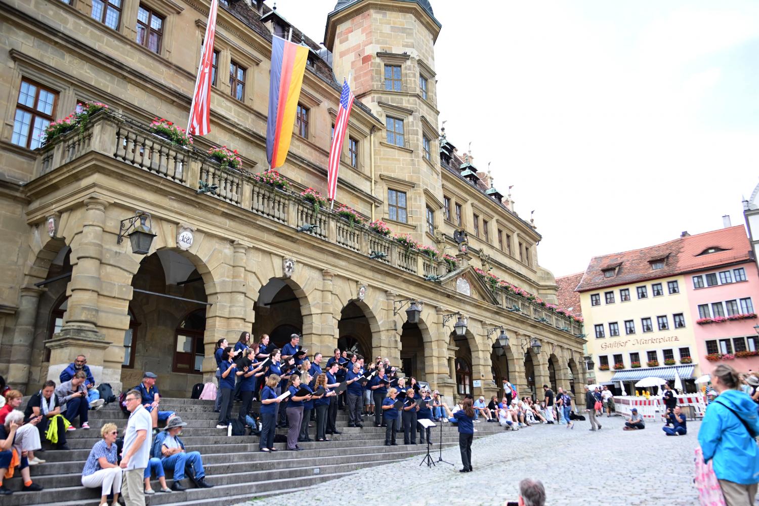 市政厅正面前方的台阶上,有一队人,正在排练,目测,无法判断是当地人,还是像衣襟一样来研学或比赛的其他团队。