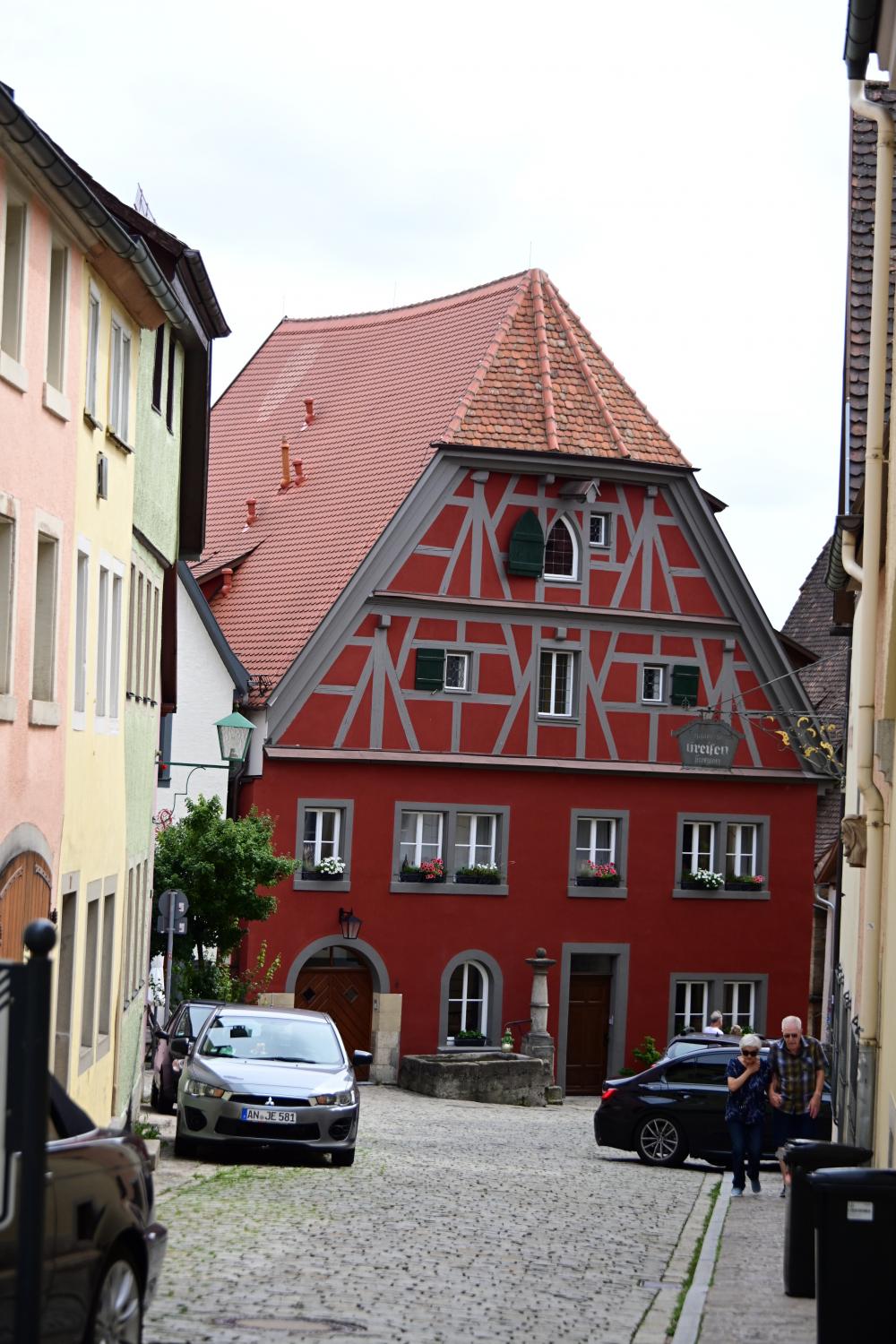 往布云莱的方向靠近,经过的建筑,属罗腾堡典型的中世纪半木结构建筑。