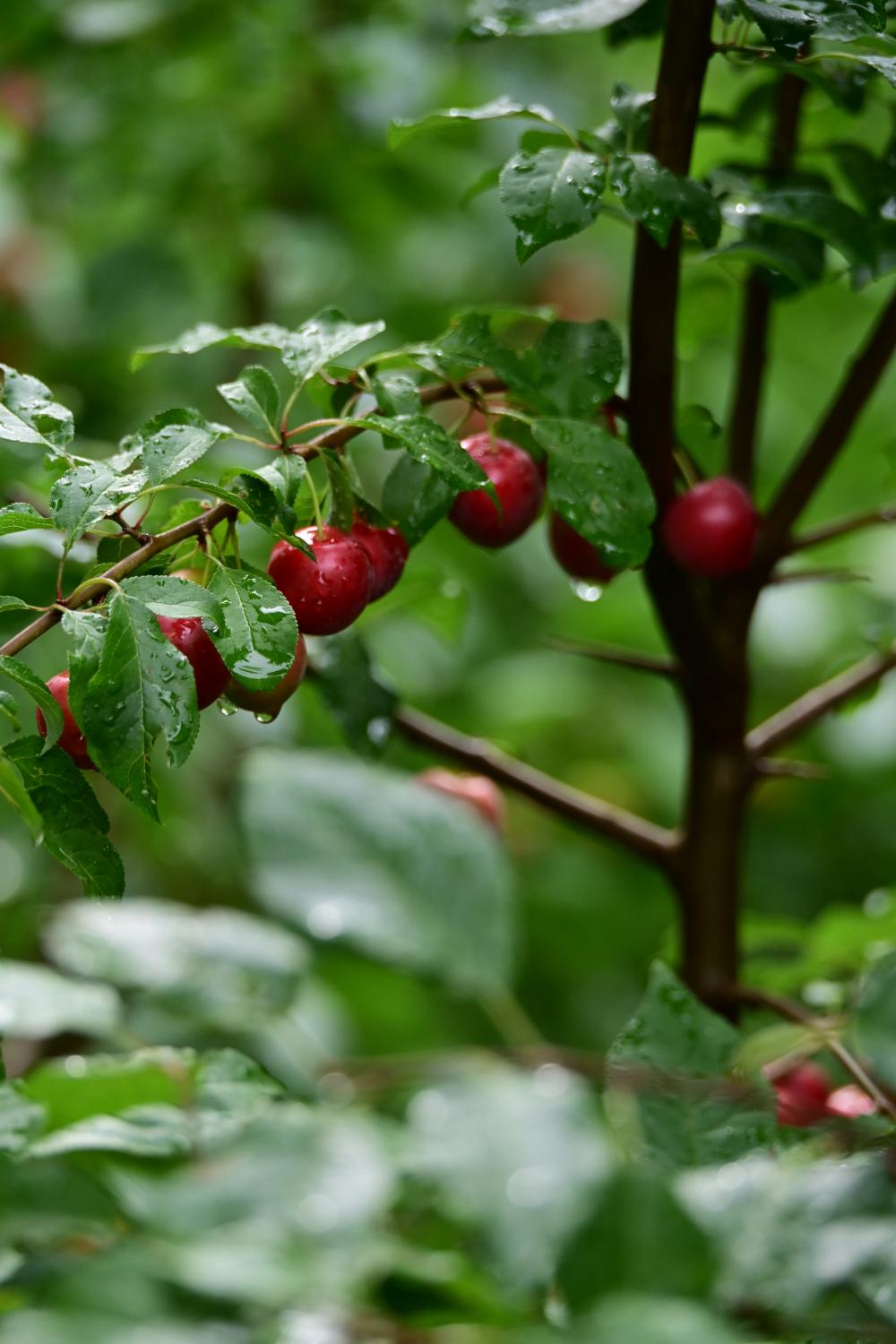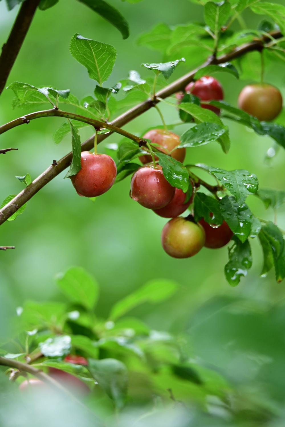 雨后的果子上,挂着水珠,水灵灵的,此时好看是关键。