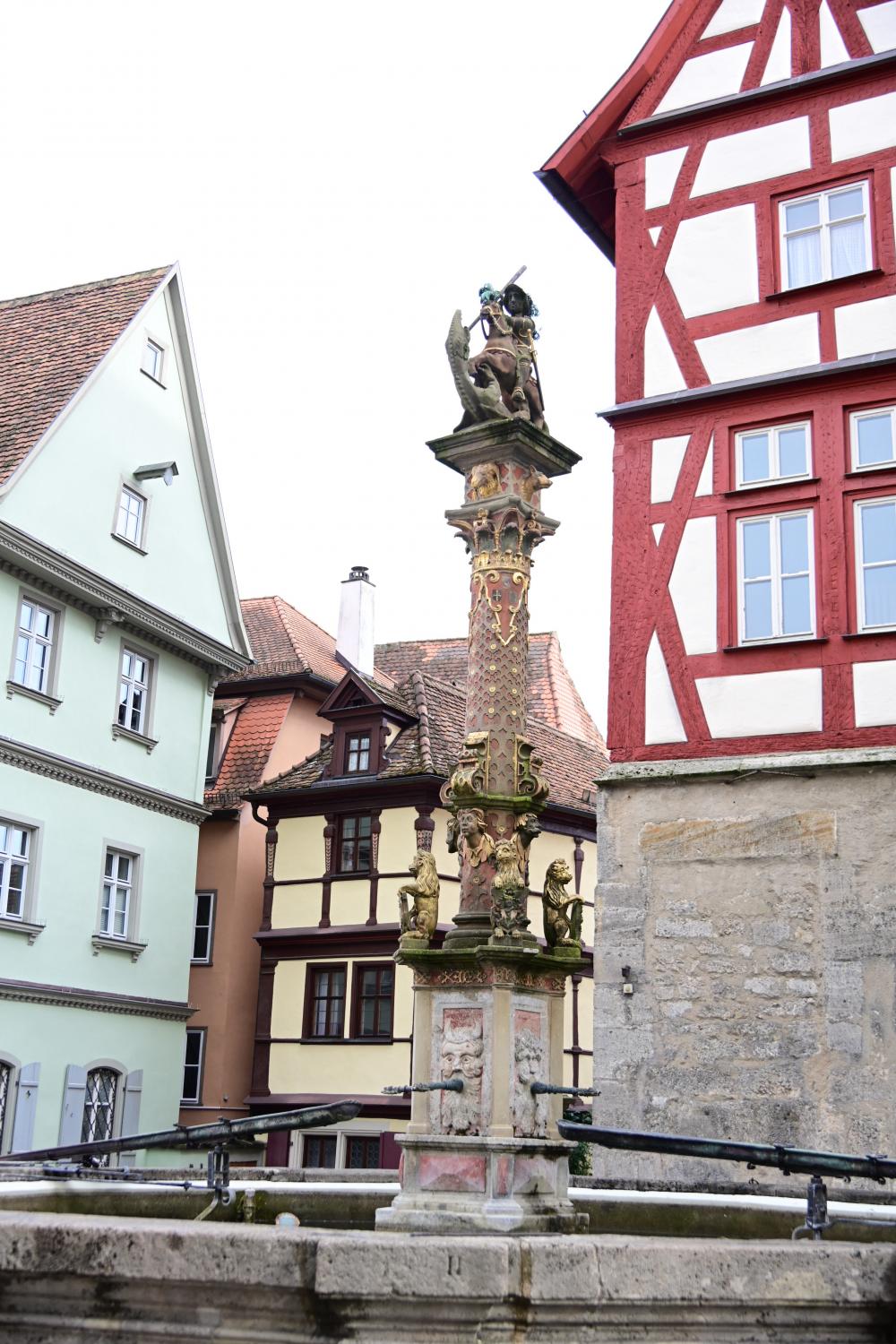 其顶部雕刻的圣乔治屠龙的经典形象,正是是罗腾堡具有代表性的景观之一,与小镇中世纪的童话氛围相得益彰。