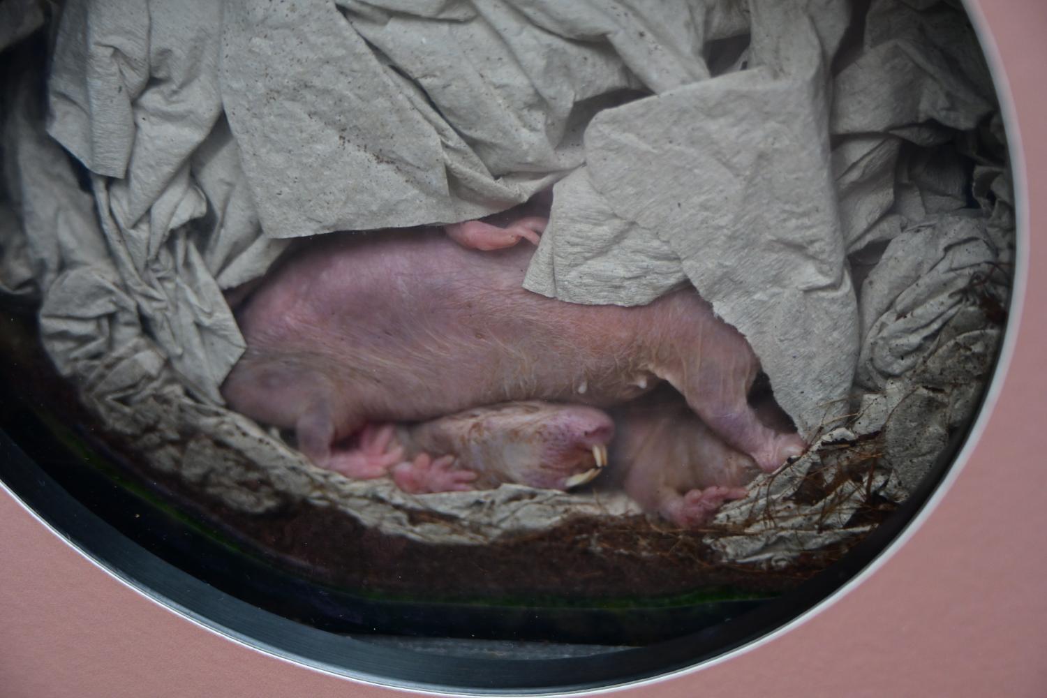 玻璃里,还有一群名为Nacktmull的动物,译为裸鼹鼠。裸鼹鼠具有类似蚂蚁、蜜蜂的社会结构,存在明确的分工与繁殖等级。
