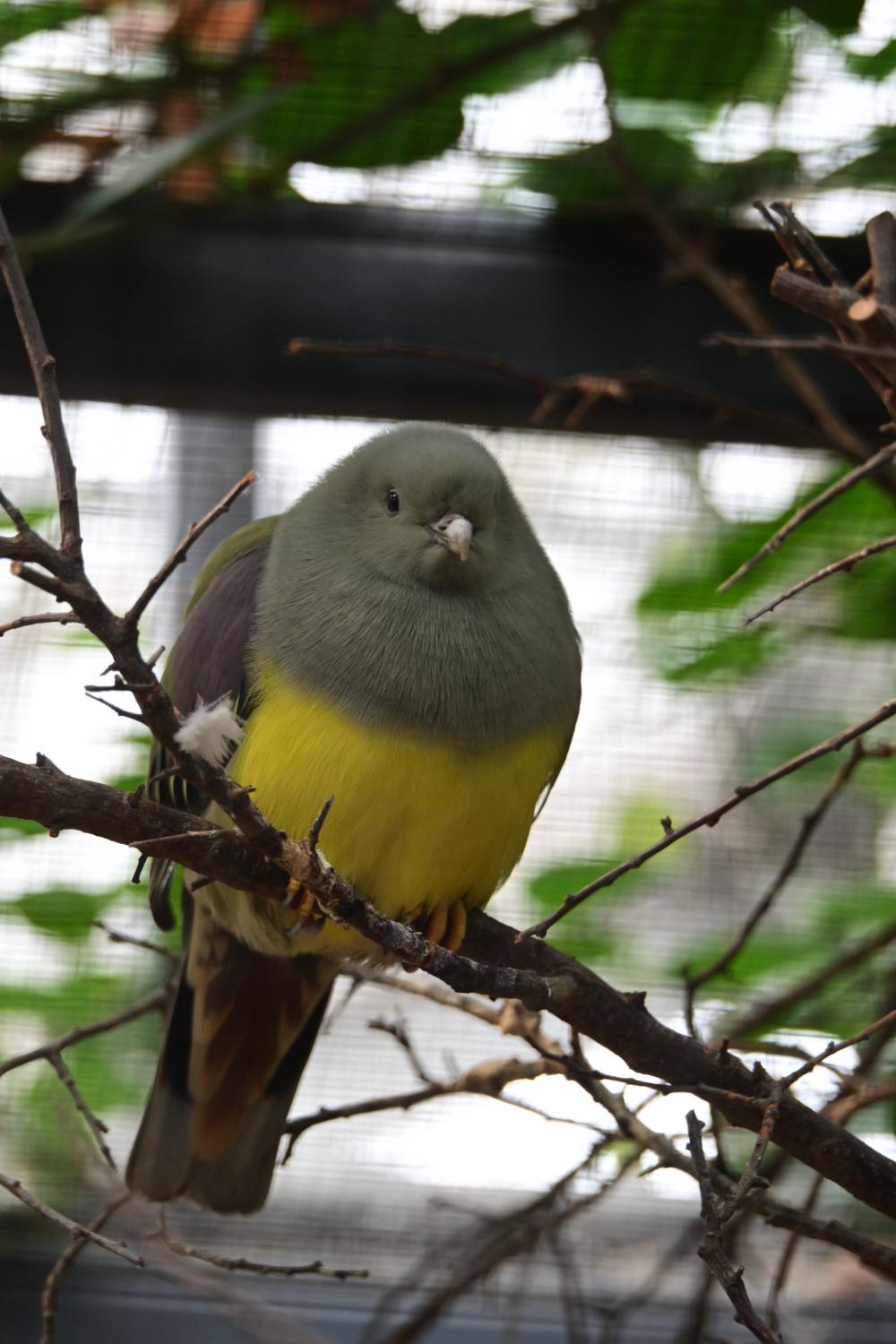 黄腹绿鸠,看着圆鼓鼓的,不知是炸毛了,还是动物园的伙食太好了。