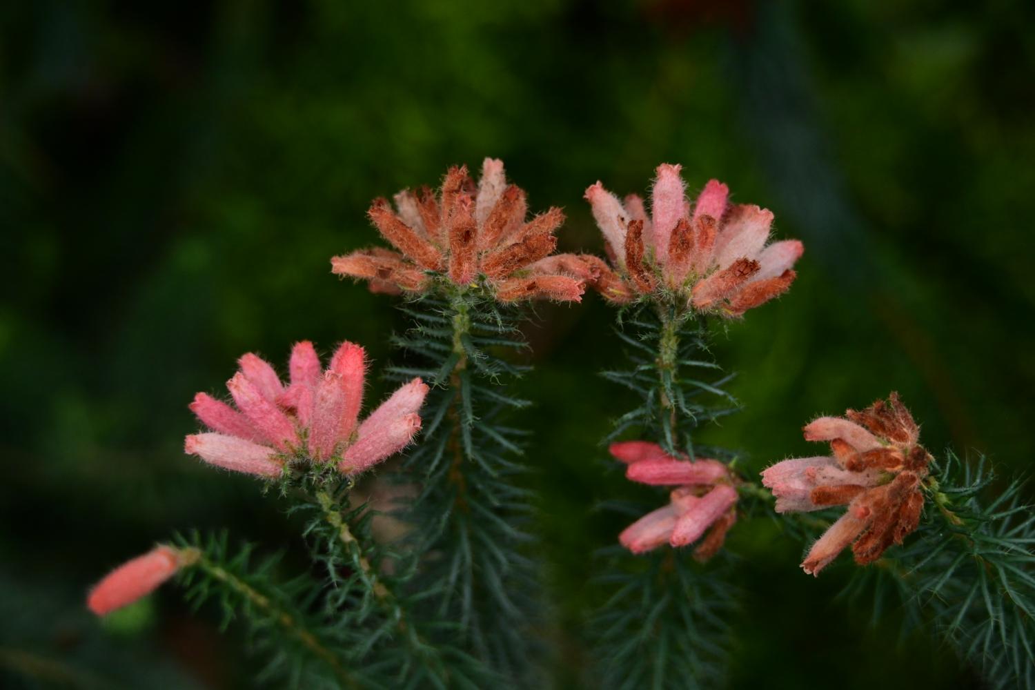 花朵形态独特,像一个个小菠萝,图片被压缩,看不太清了。