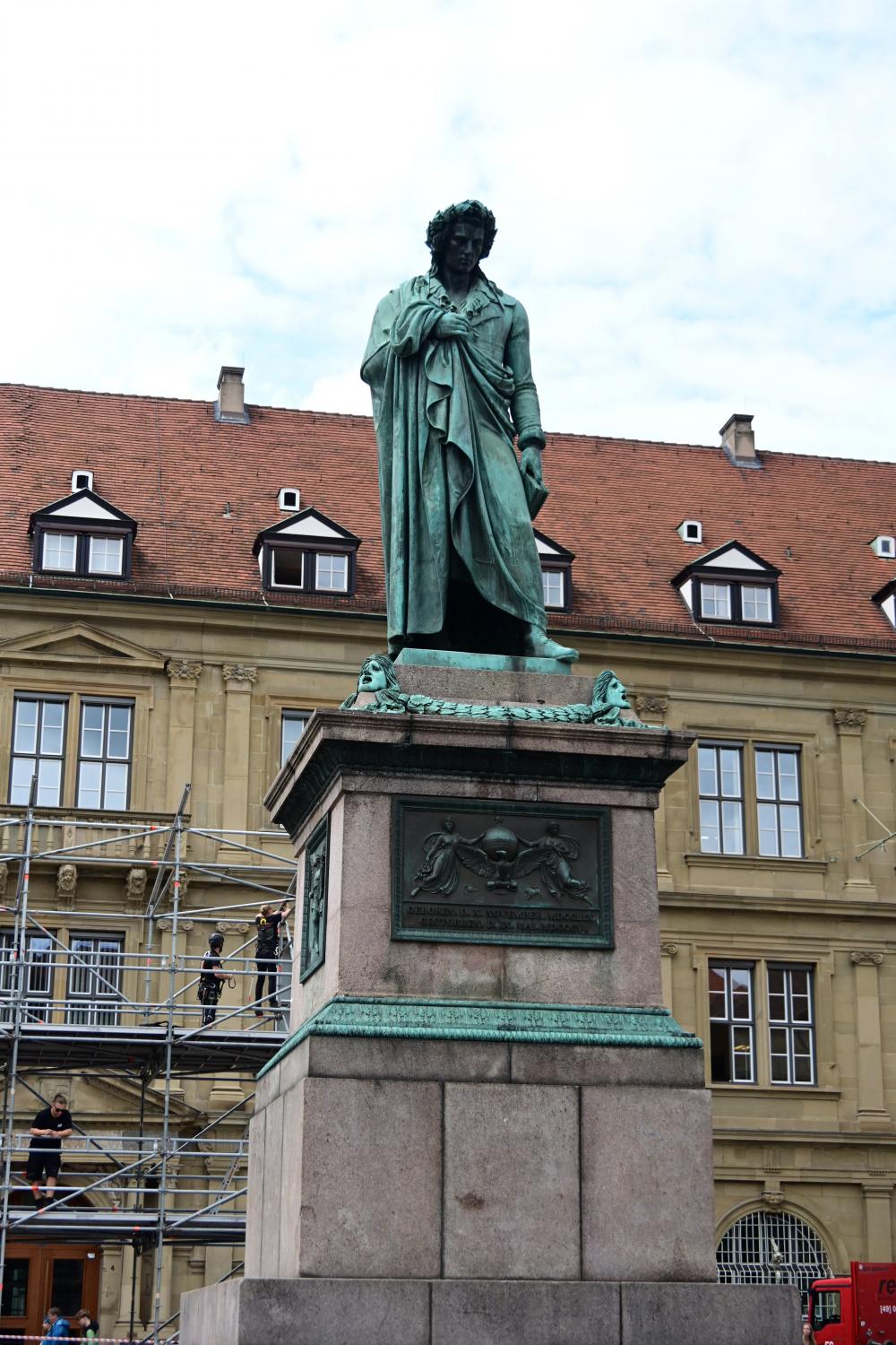 矗立在斯图加特市中心席勒广场中央的席勒青铜雕像,于1839年由丹麦雕塑家创作,广场也因此得名,雕像不仅是纪念席勒文学贡献的重要地标,也象征着其与斯图加特的历史联结,成为承载城市文化、市民精神的核心空间之一。