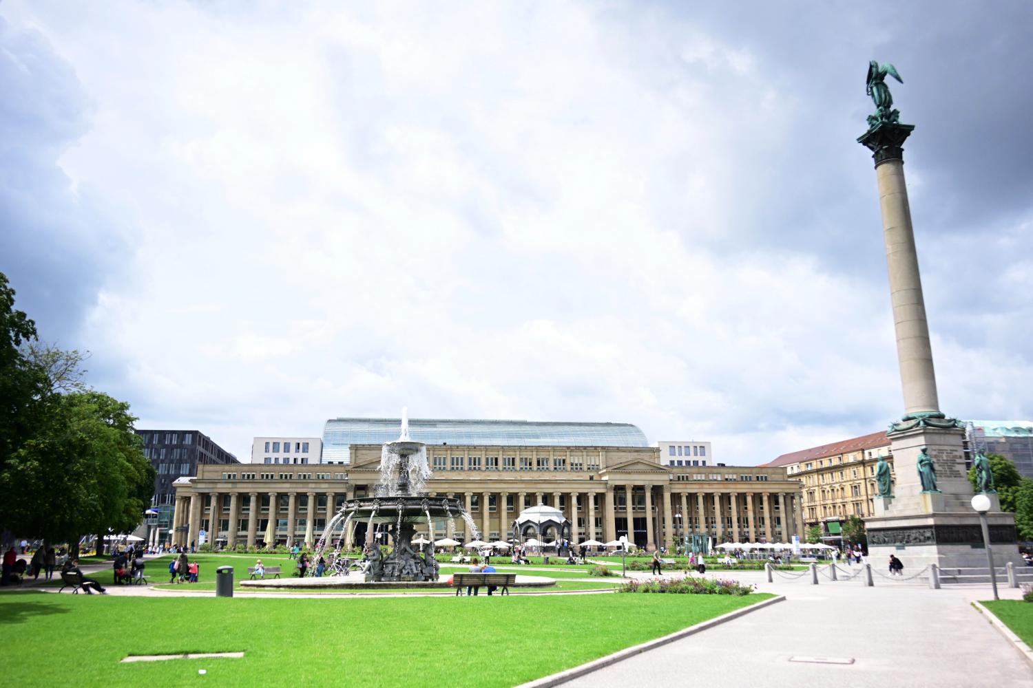 水池的一侧,是斯图加特国家剧院,斯图加特的一处核心文化地标,常年上演歌剧、戏剧、芭蕾等各类艺术演出,建筑风格典雅庄重。