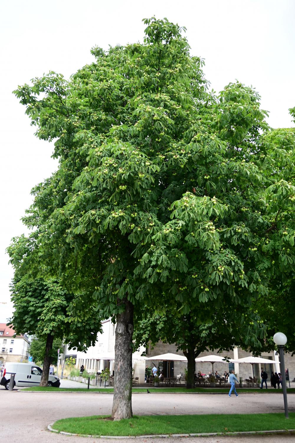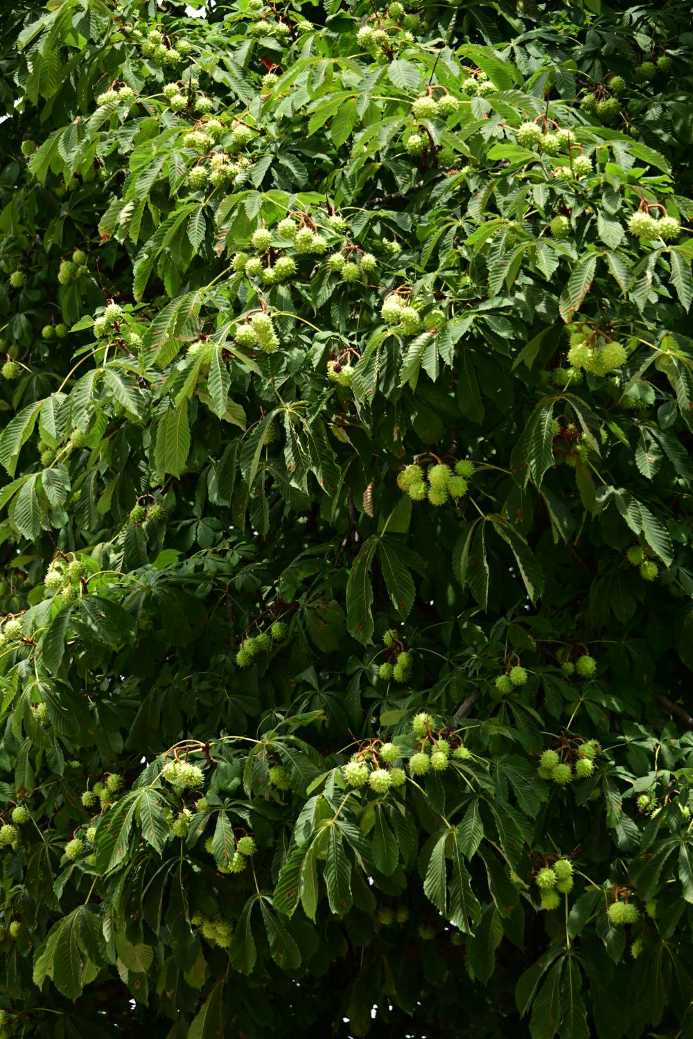 栗子树是王宫广场的绿化用树,枝叶间坠着很多栗子。