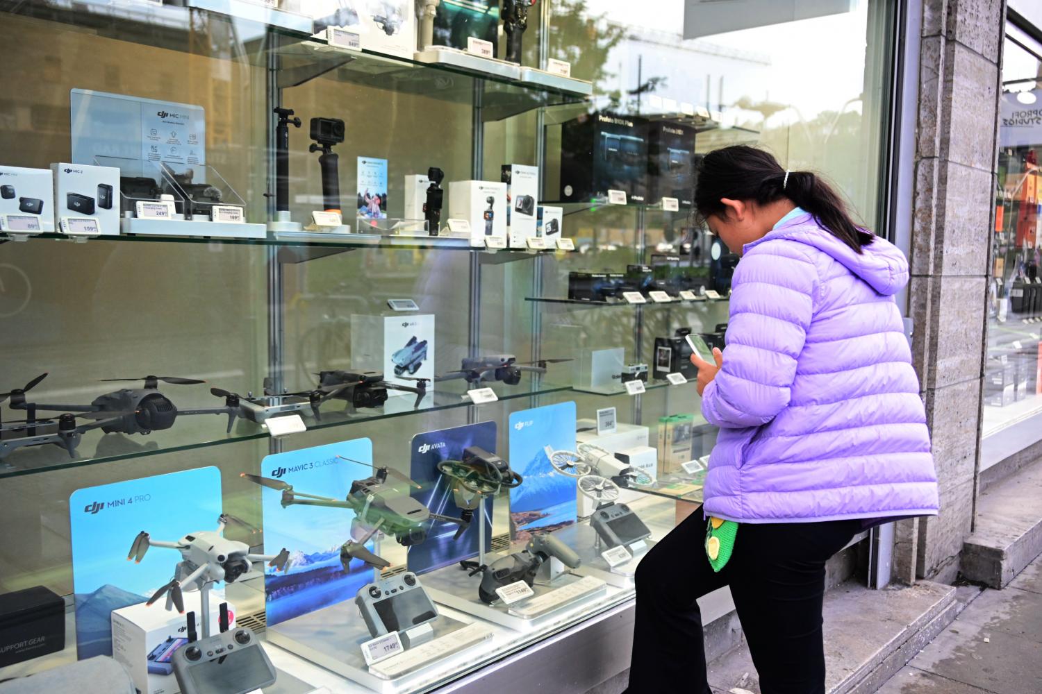 饱餐后继续散步,发现了大疆店,店已经关门了,但橱窗可以随便参观。不得不说,此时是骄傲了片刻的。