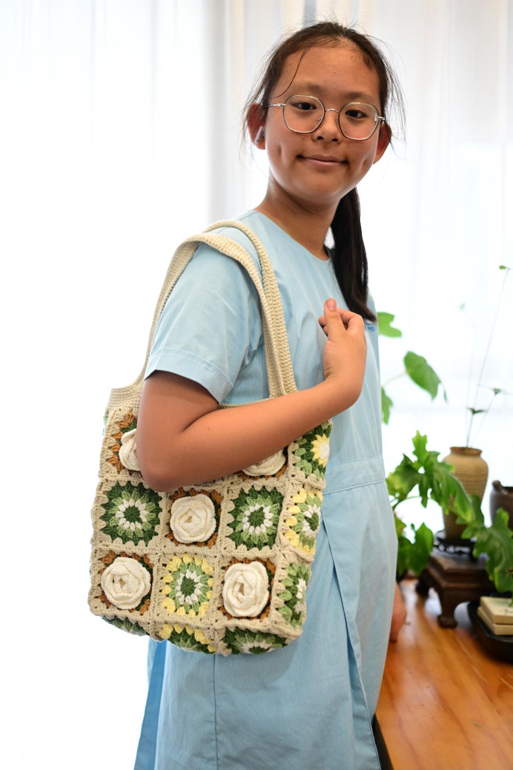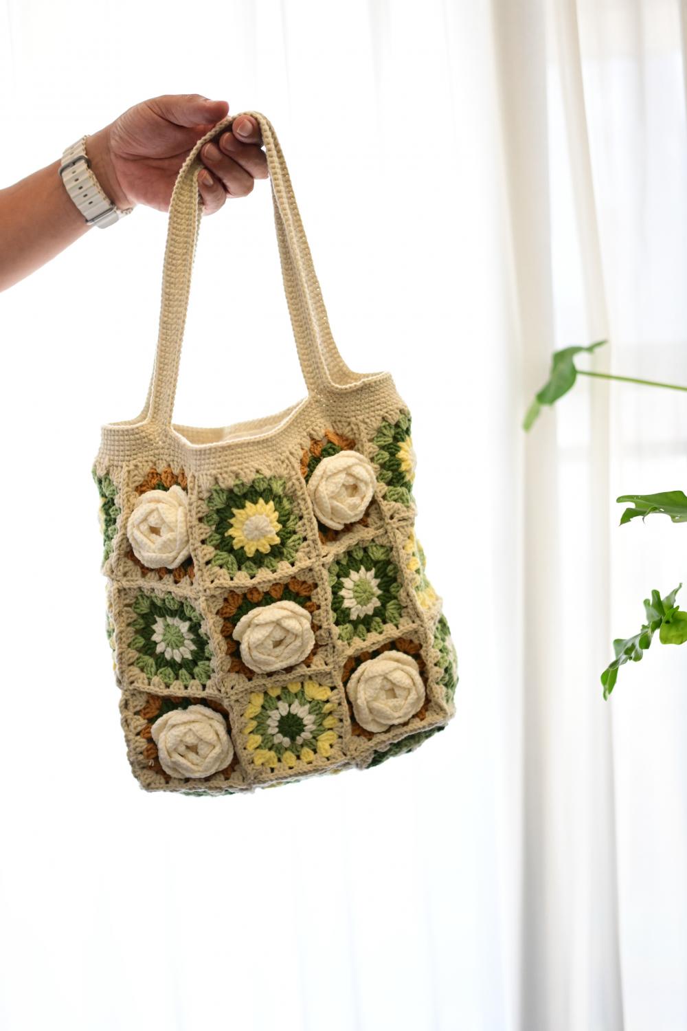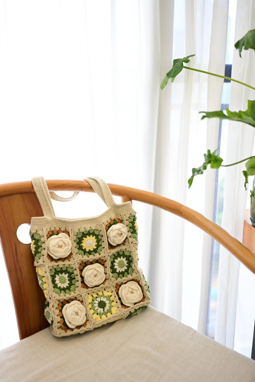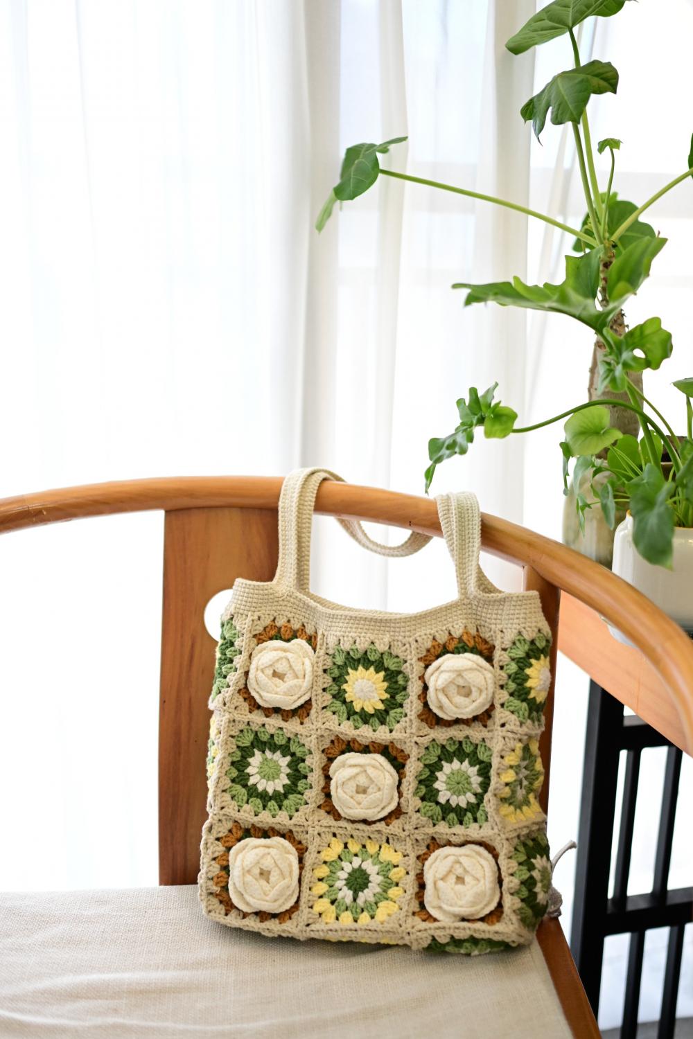 看着复杂实则不然的山茶花祖母格包包,动动手,便可以拥有。