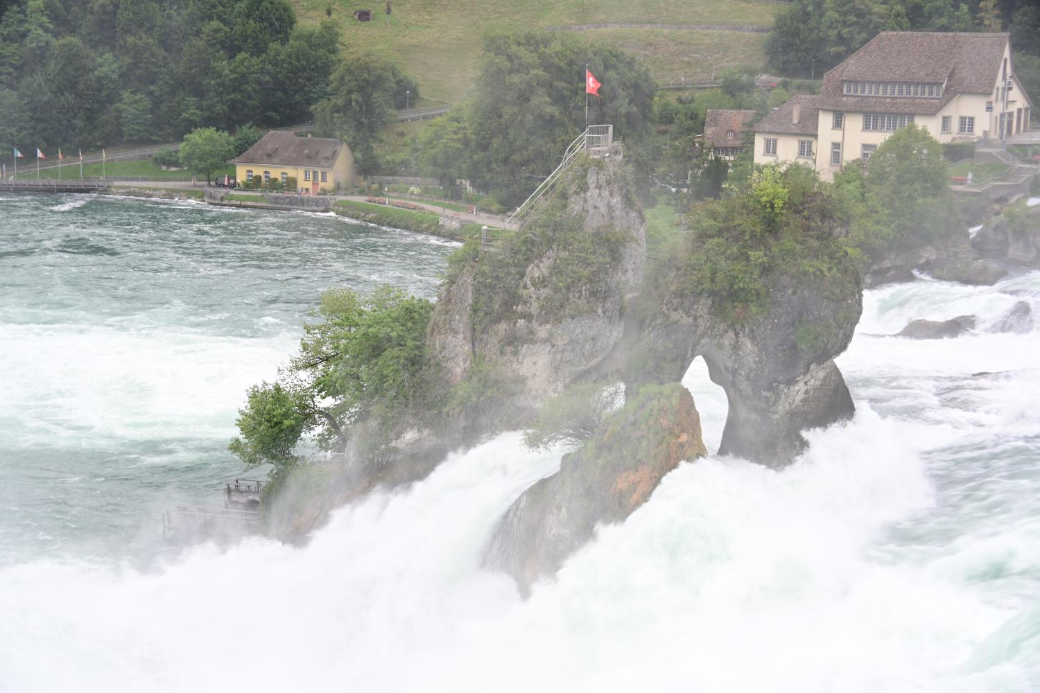 中央的两座巨石,被称为莱茵石,是原始河道岩壁的残留物,见证了千万年的地质变迁。科学家曾在此研究水力侵蚀与岩石结构,使其成为地质学研究的天然实验室。