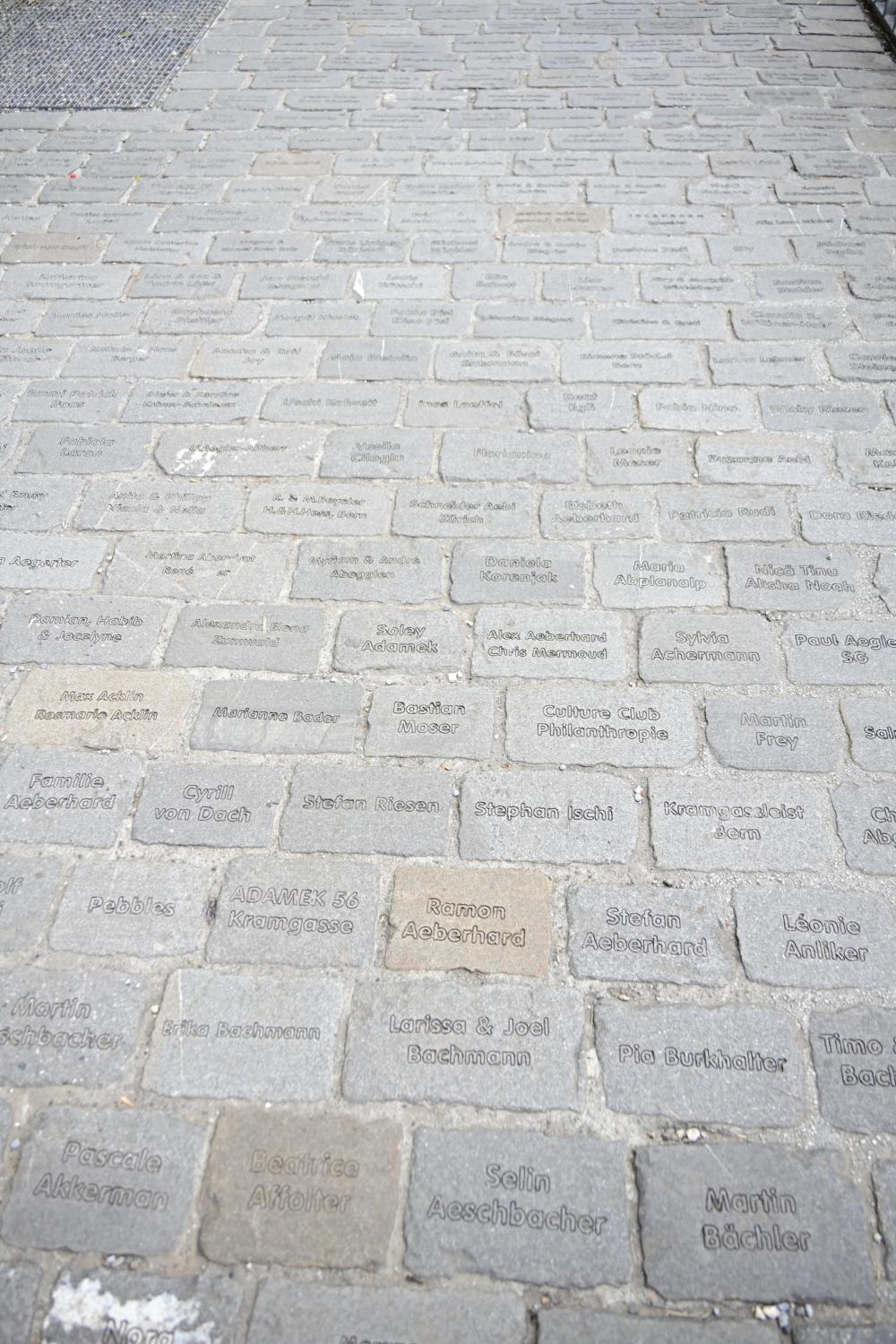 再看脚下, 通道的地砖上,刻着的应该是人名,应该是为熊公园做出捐助的市民吧。