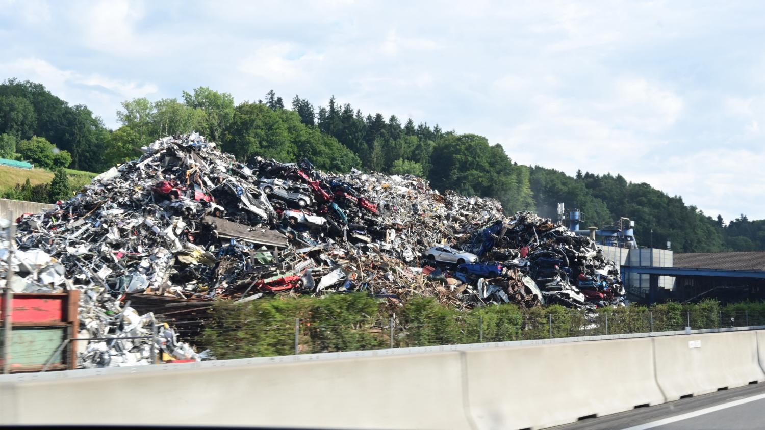 继续往入住的酒店跑,路边的废旧汽车场,汽车被压得真的成了废铜烂铁,场面也很壮观。
