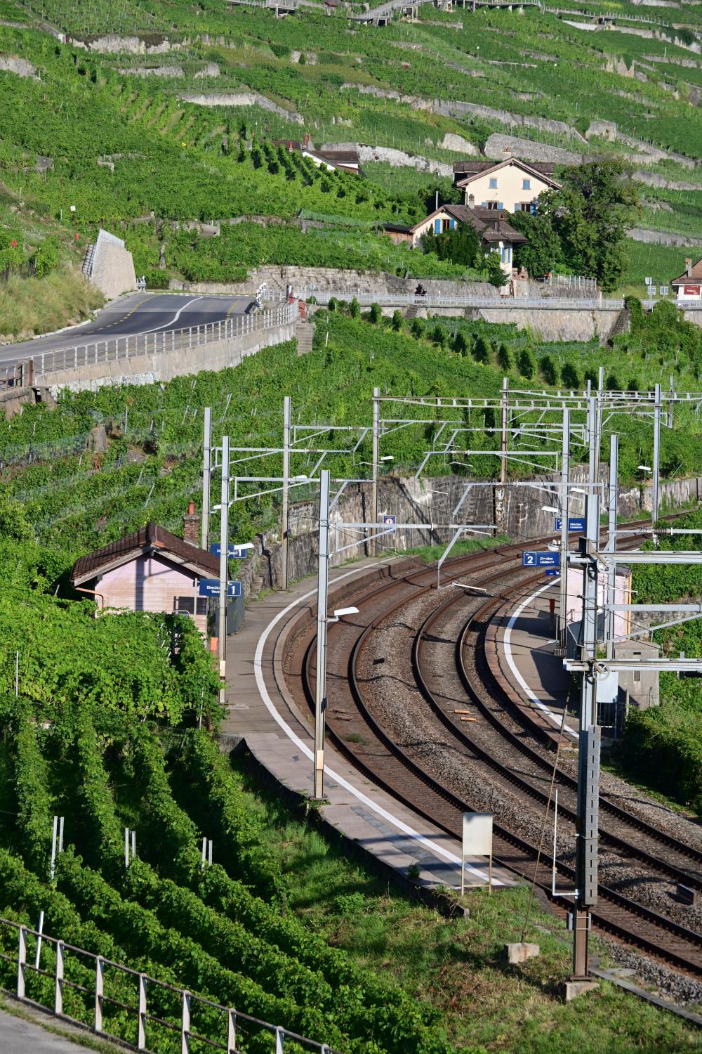 大概是Cully站,紧邻湖岸,瑞士联邦铁路(SBB)的R3线每小时会有1-2班列车在此经停,从洛桑出发发20分钟可达这个车站。