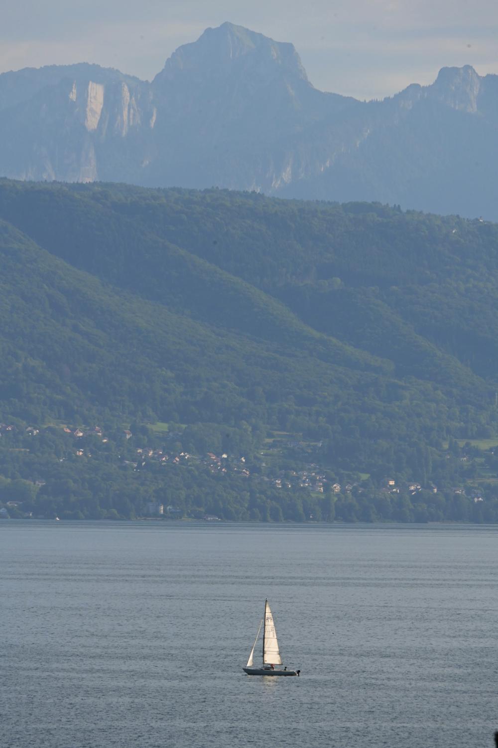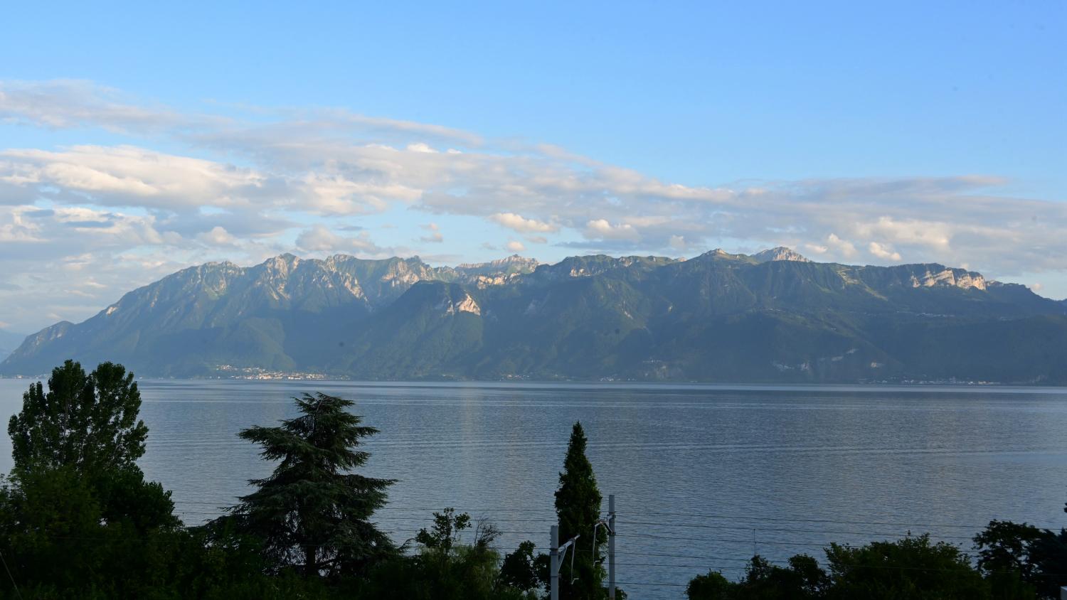 对面湖岸,是法国境内的阿尔卑斯山脉中的夏布莱山脉段。这片山脉属于阿尔卑斯山脉的分支,与日内瓦湖的湖光山色共同构成了拉沃地区标志性的壮美景观。