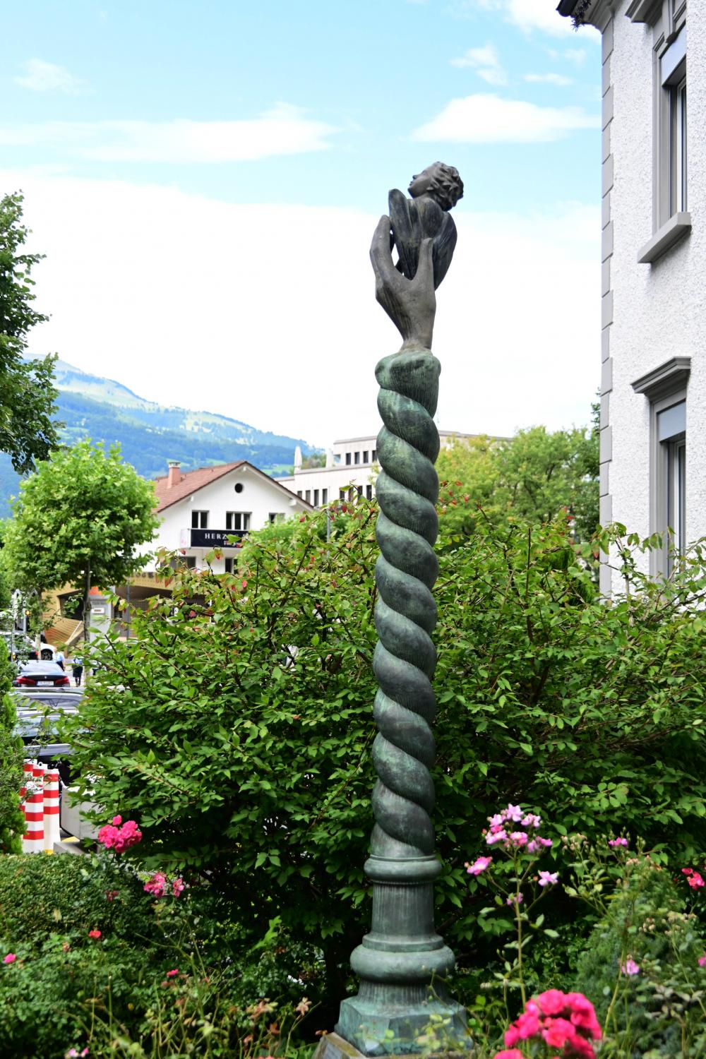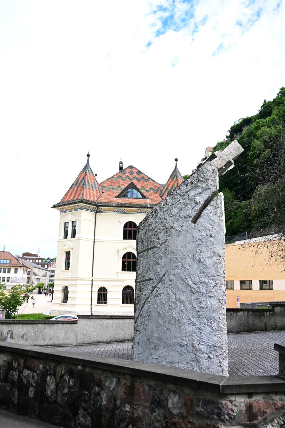 教堂前面,还有一件现代风格的雕塑,以抽象的形态引发观者对空间、形式的思考,与背景中来自政府办公楼的历史感形成传统与当代的对话,为瓦杜兹增添了艺术活力。