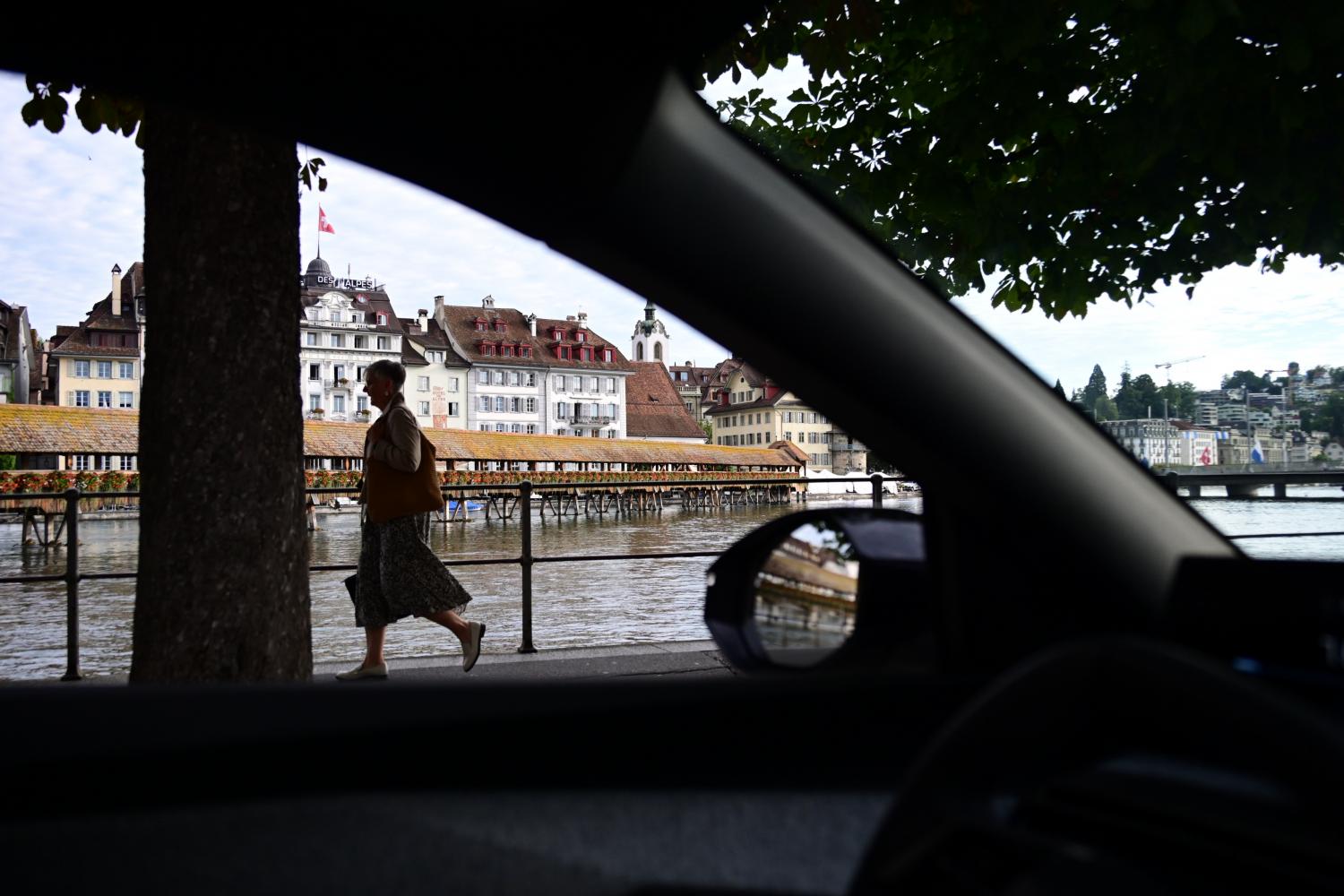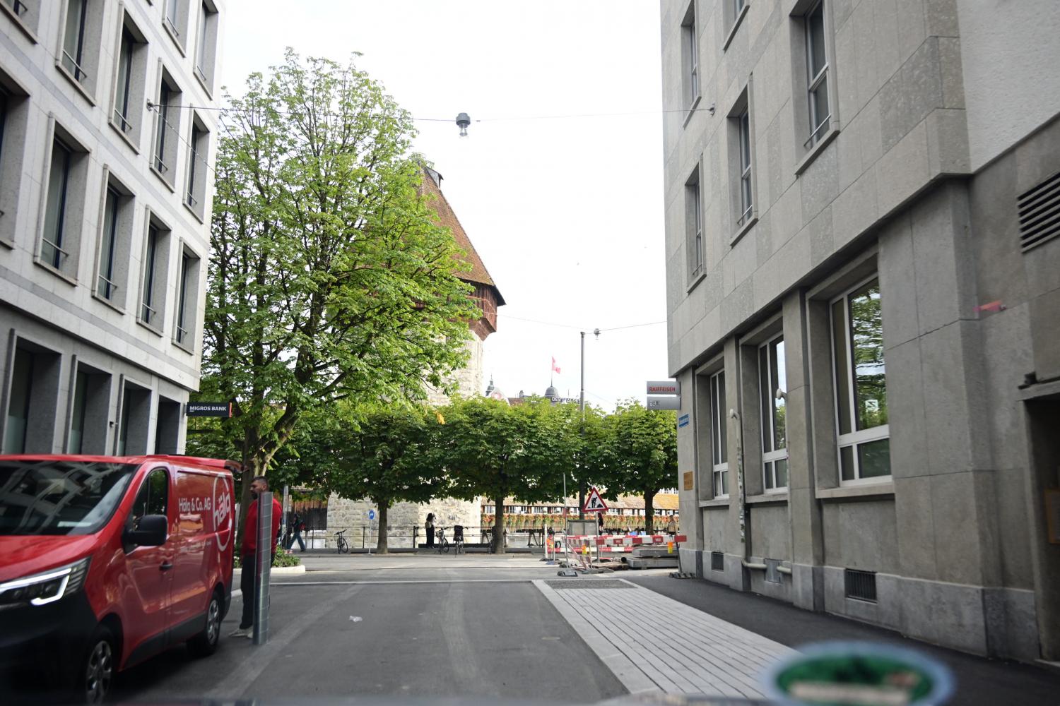 车子驶出酒店停车场,正对着的,就是卡佩尔廊桥的八角型水塔。