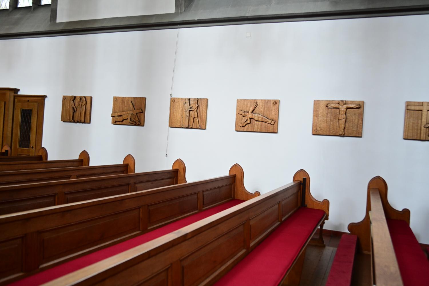 呈现的是耶稣受难的14个关键场景,造型简洁质朴,富有宗教感染力。