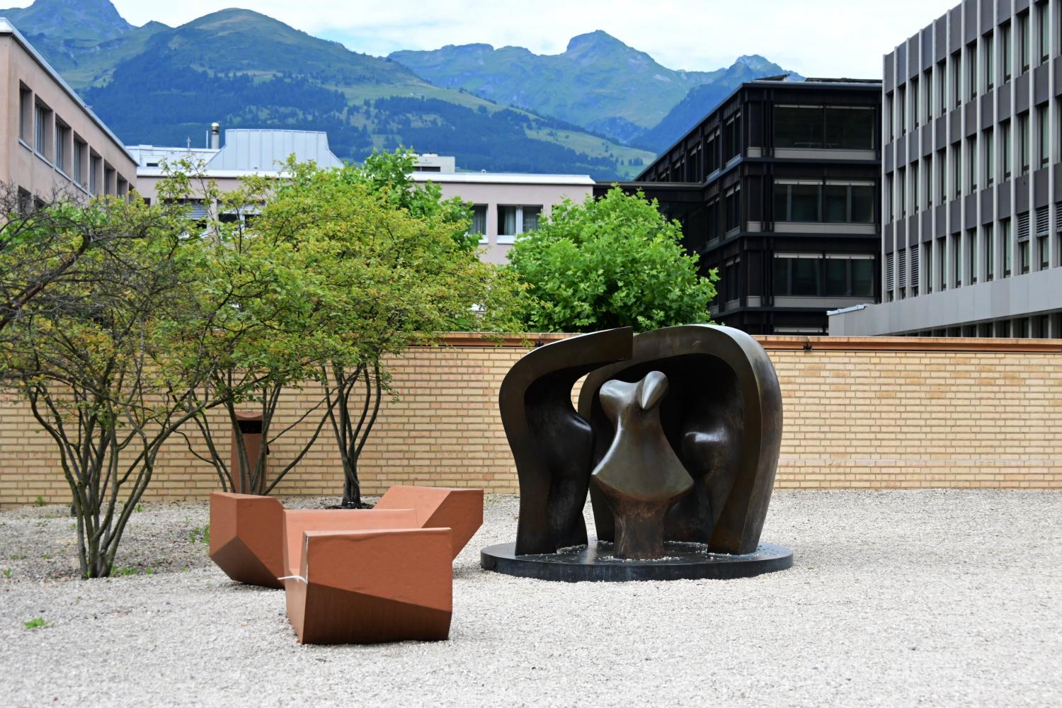 雕塑以青铜材质呈现,造型融合了人体的曲线与抽象的几何感,内部镂空的设计是摩尔负空间艺术语言的典型体现,既像人体的蜷缩姿态,又暗含自然山石的形态,与列支敦士登的山地景观形成巧妙呼应。
