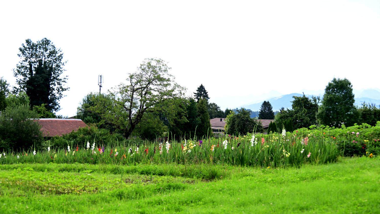 小片种植的花卉,也可能是有经济价值的吧,排列上不像是单纯为了美观。