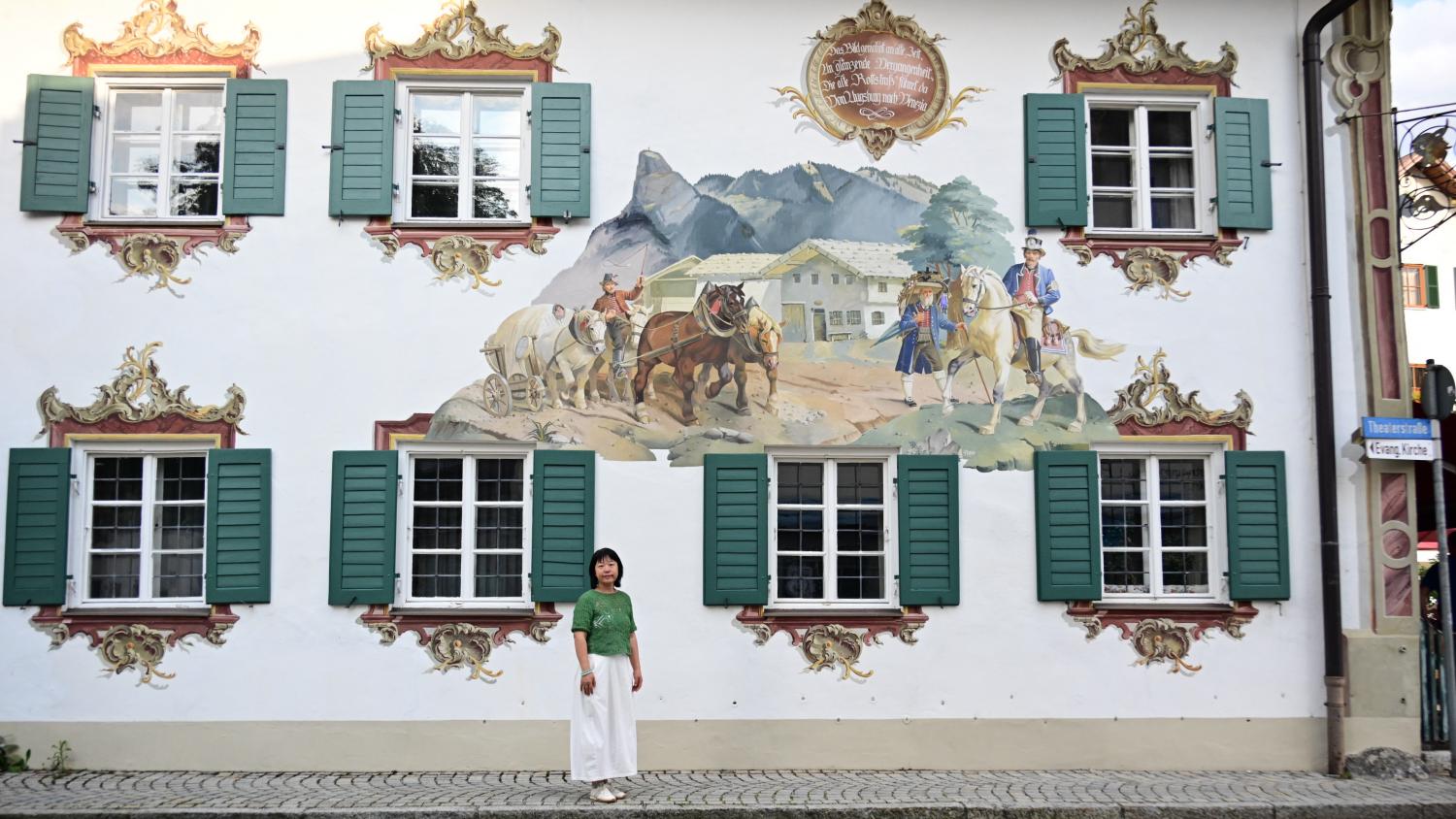 说到壁画村,很多地方都有,德国的壁画村指的是上阿默高,是德国巴伐利亚州南部安珀河谷地的一个小镇,离我们的酒店大概五十分钟车程。