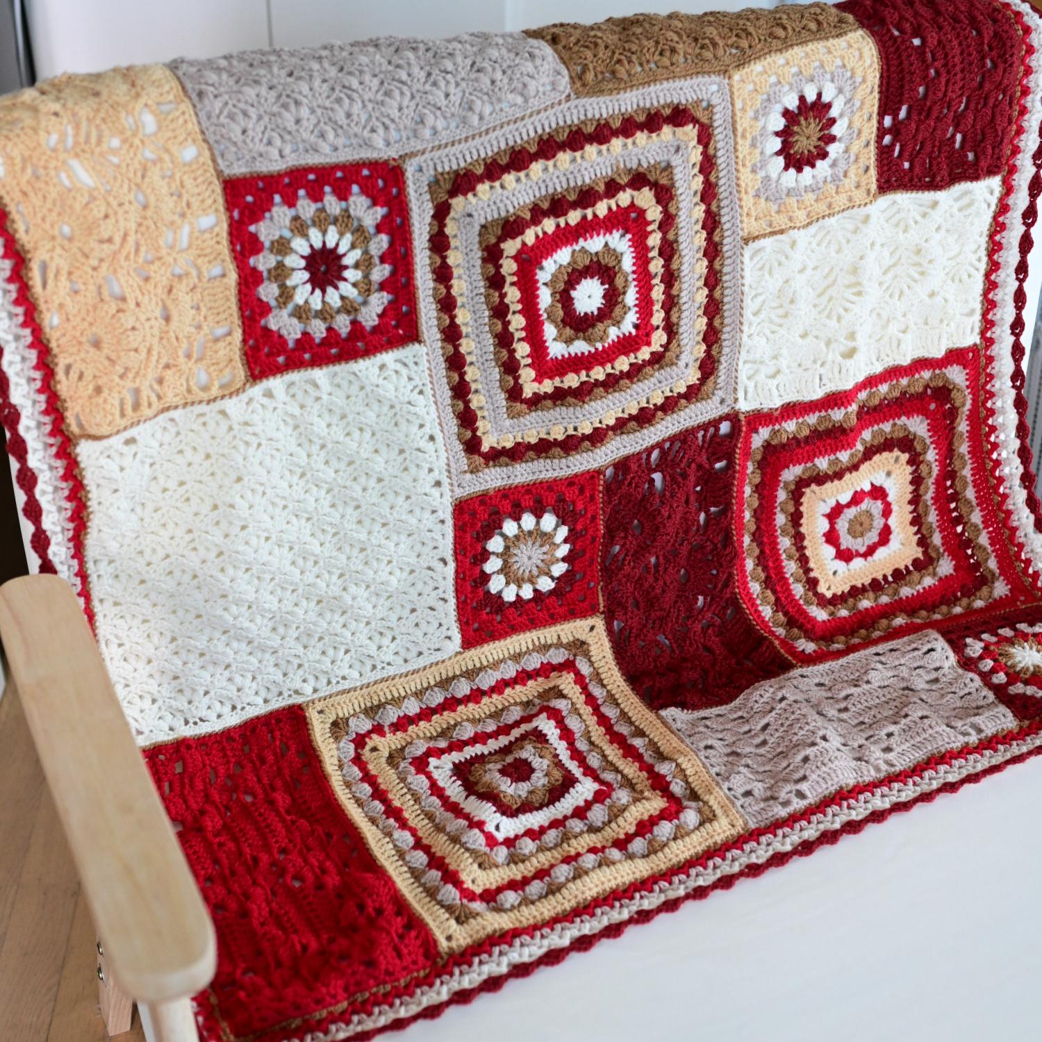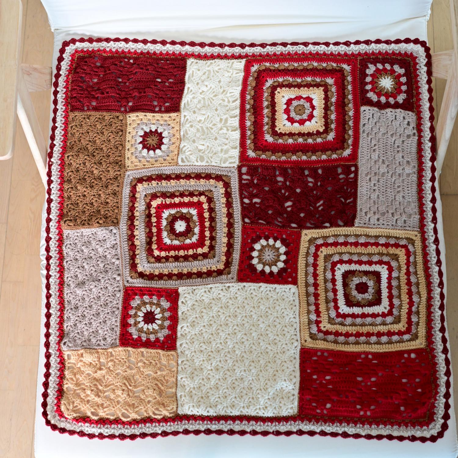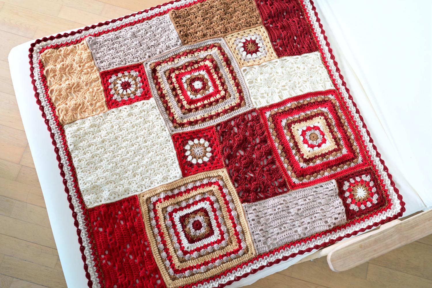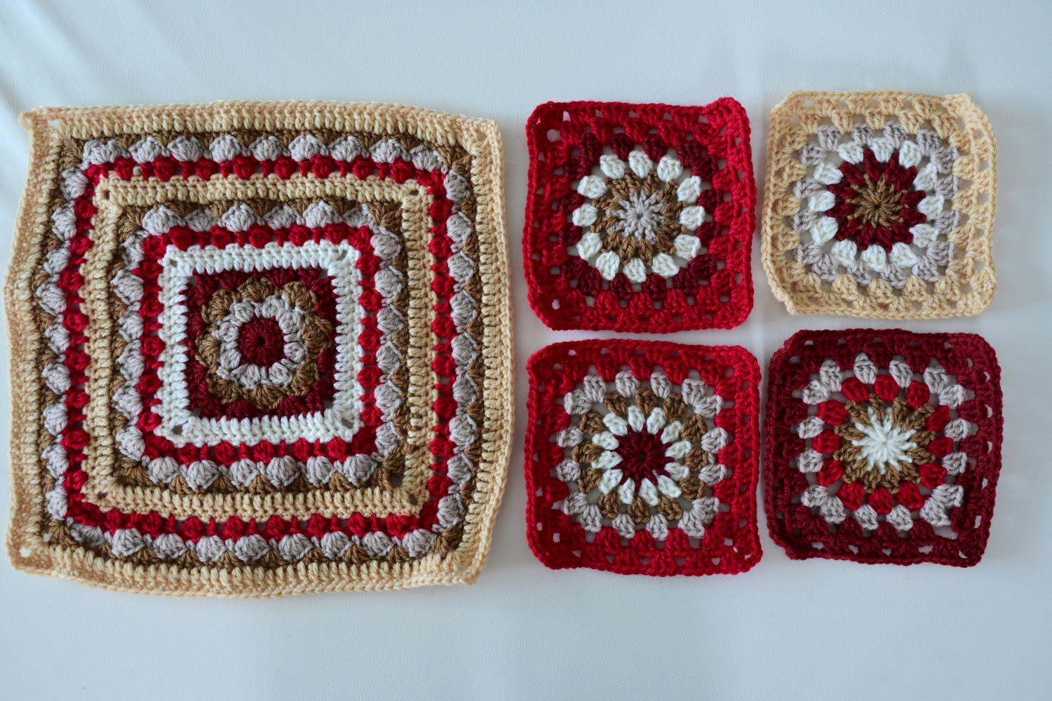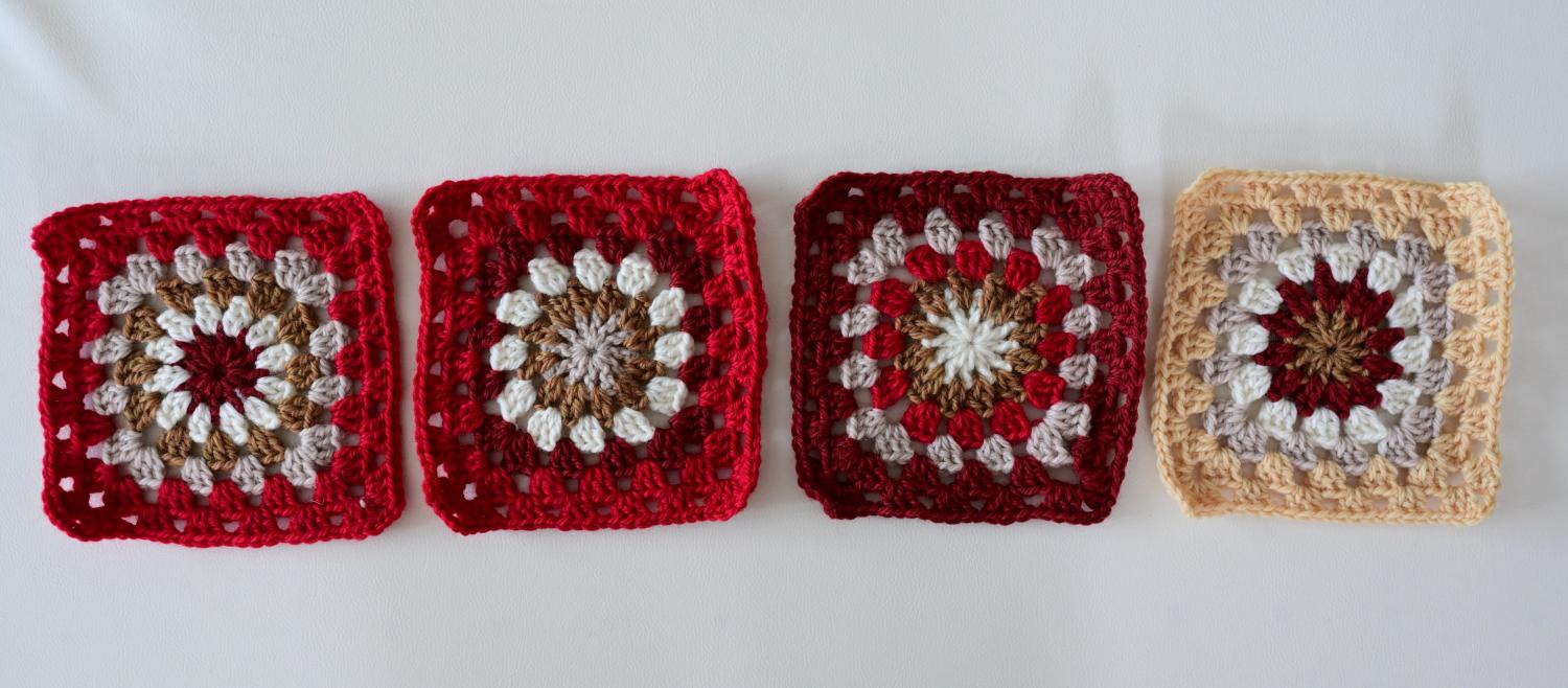 这款毯子一共用到五种花片,下图是花片一,一共四片,每片都用不同的配色方案。