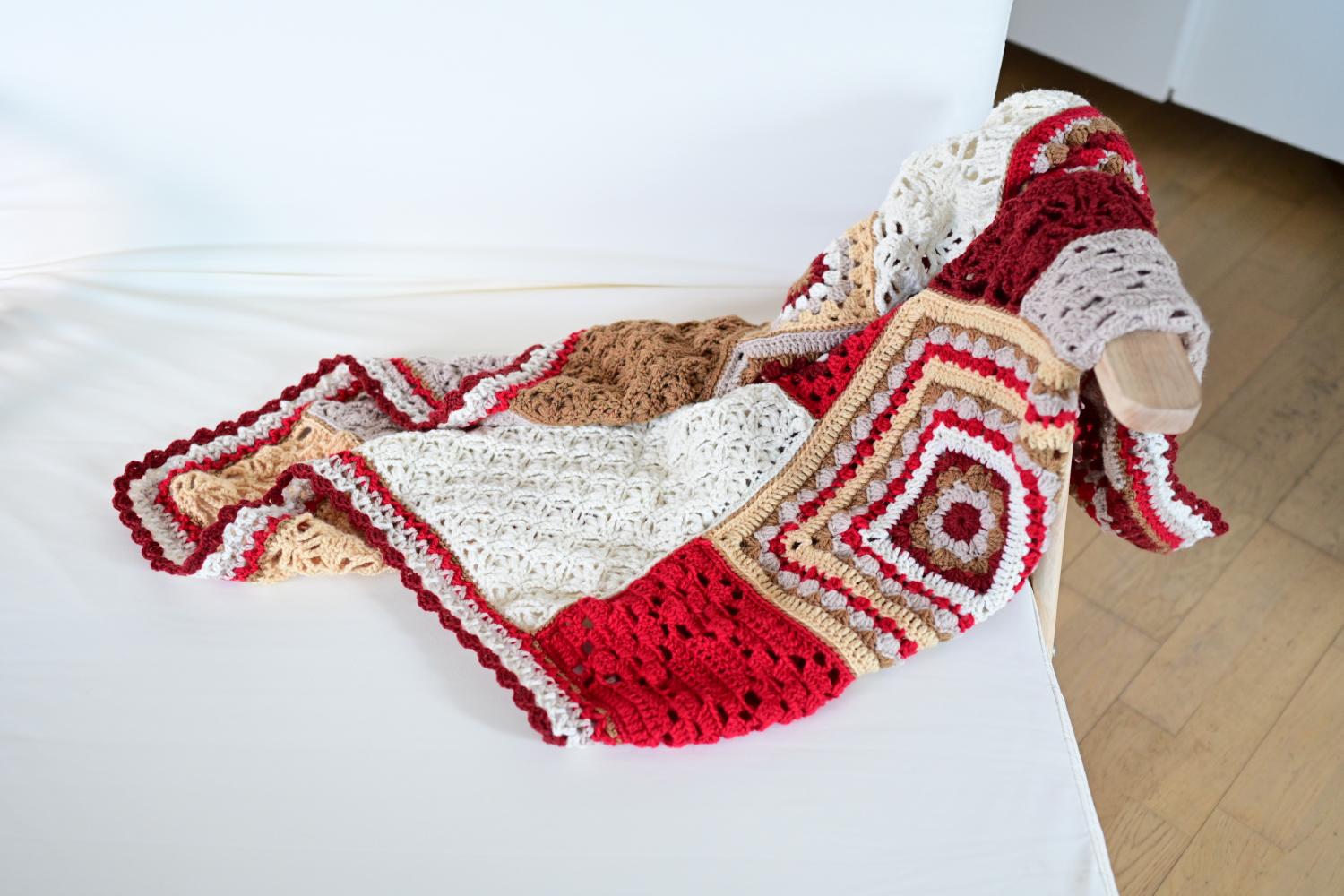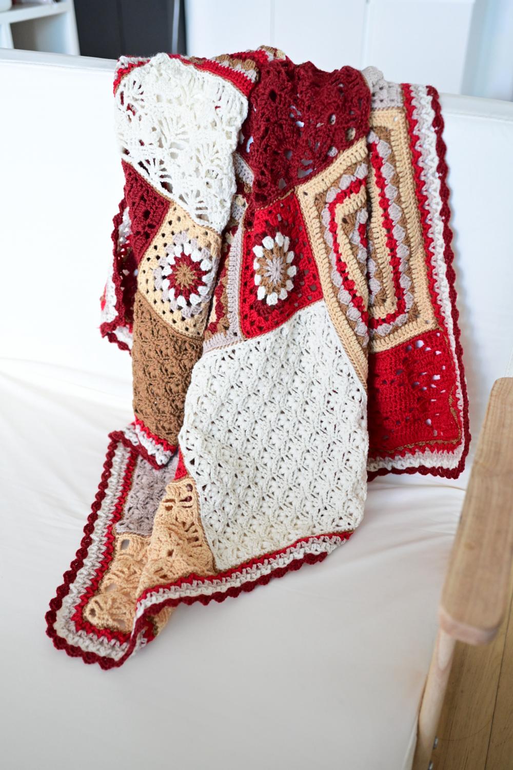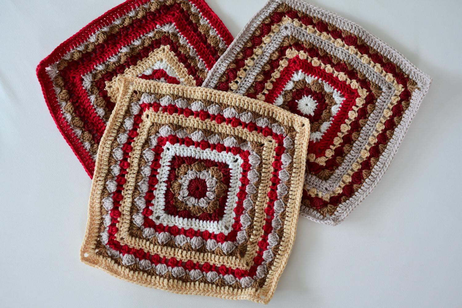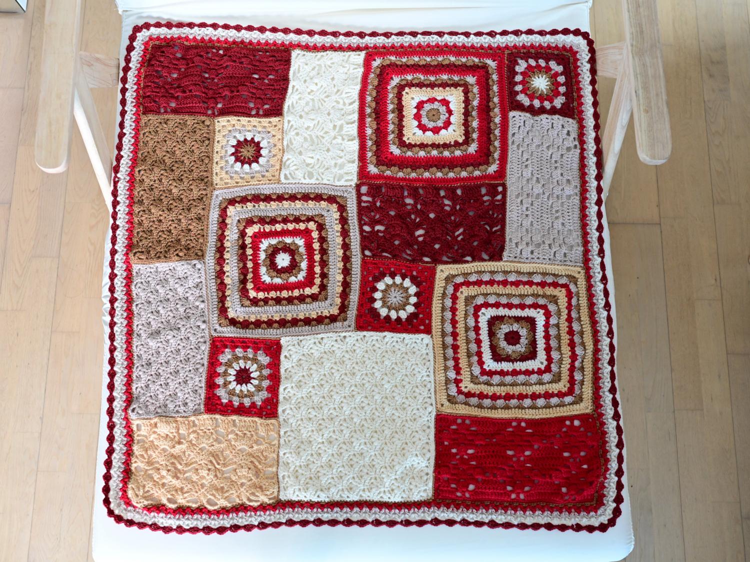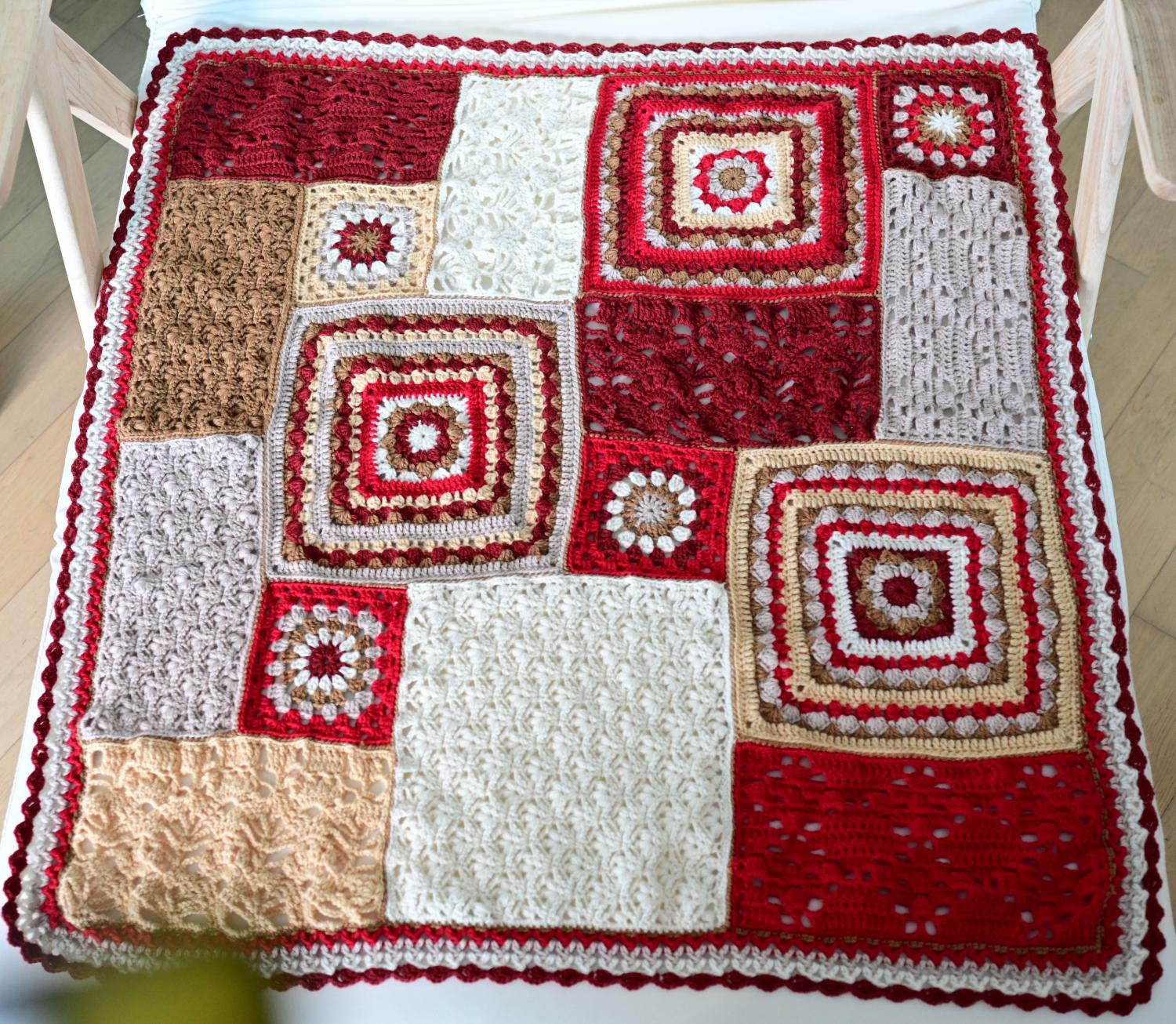 这款毯子一共用到五种花片,下图是花片一,一共四片,每片都用不同的配色方案。