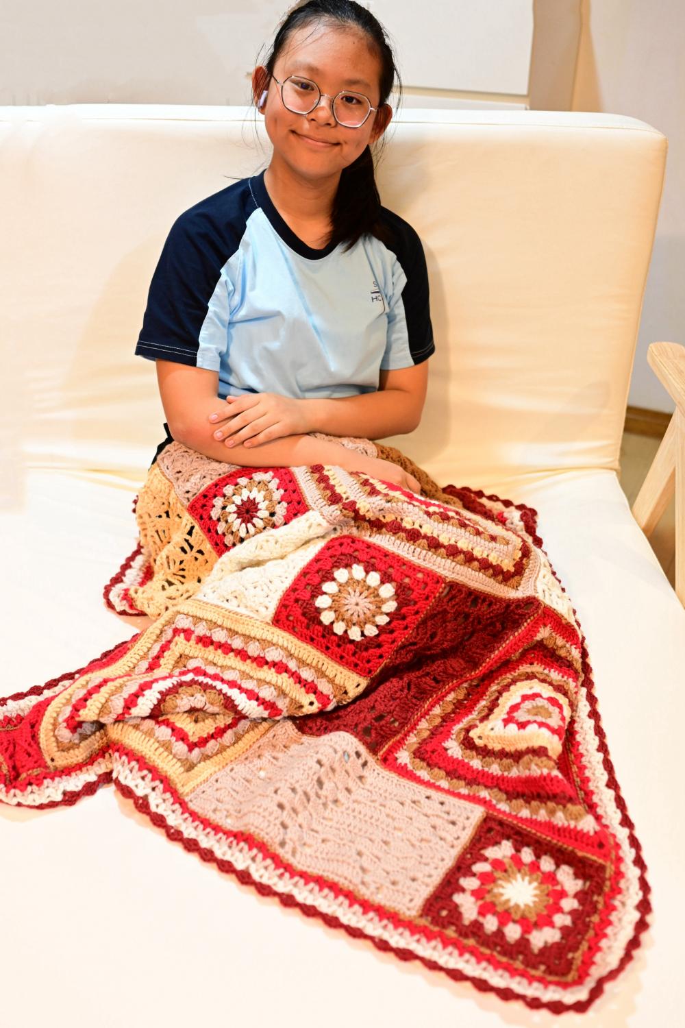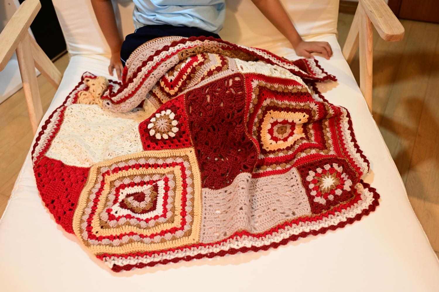 将完工后的毯子亮给家人看,个个都有震惊感,赞不绝口。