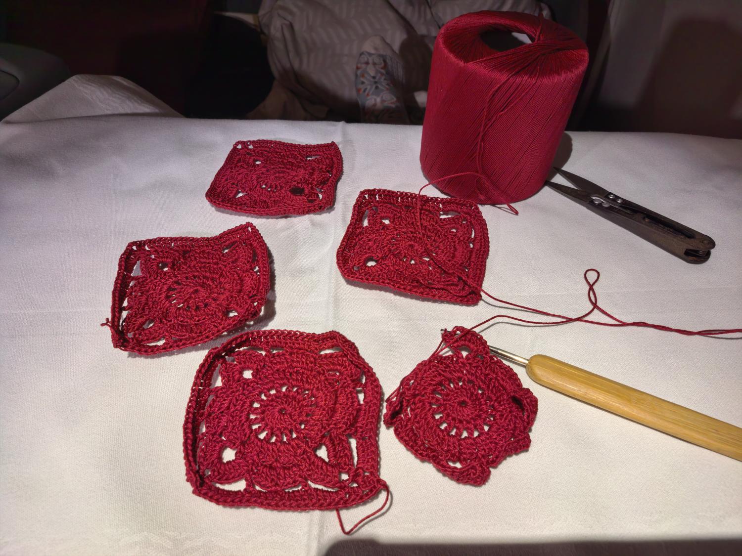 勾织片,时间很容易打发。