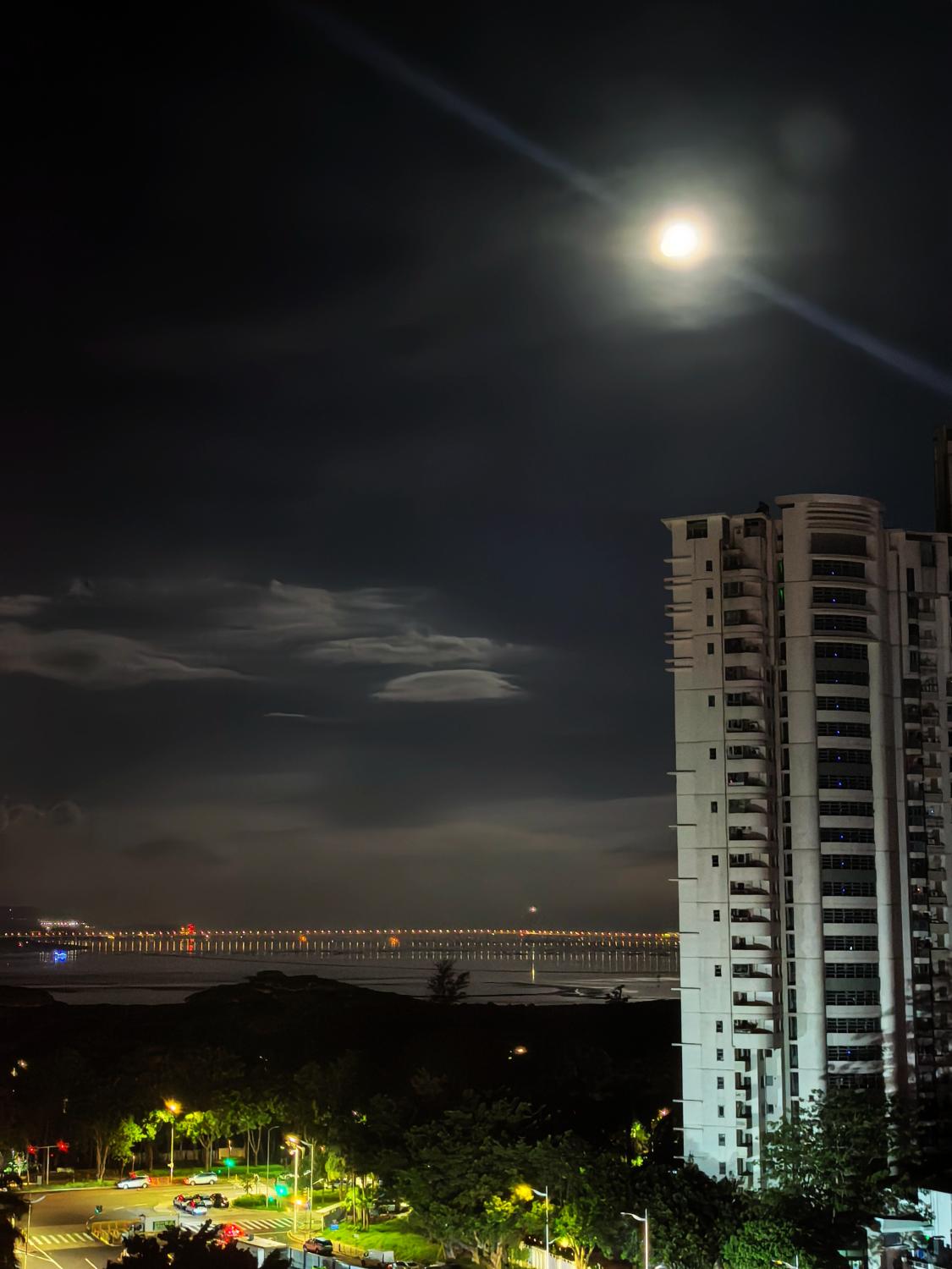 农历闰六月十七,一轮明月,正高悬,在深圳湾的上空。