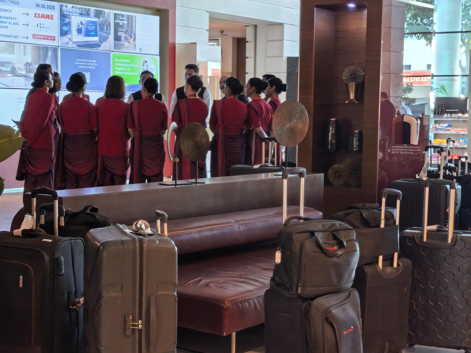 机场边的酒店,遇到航空公司的员工,也在情理之中。但这是国航,还是亲切的。