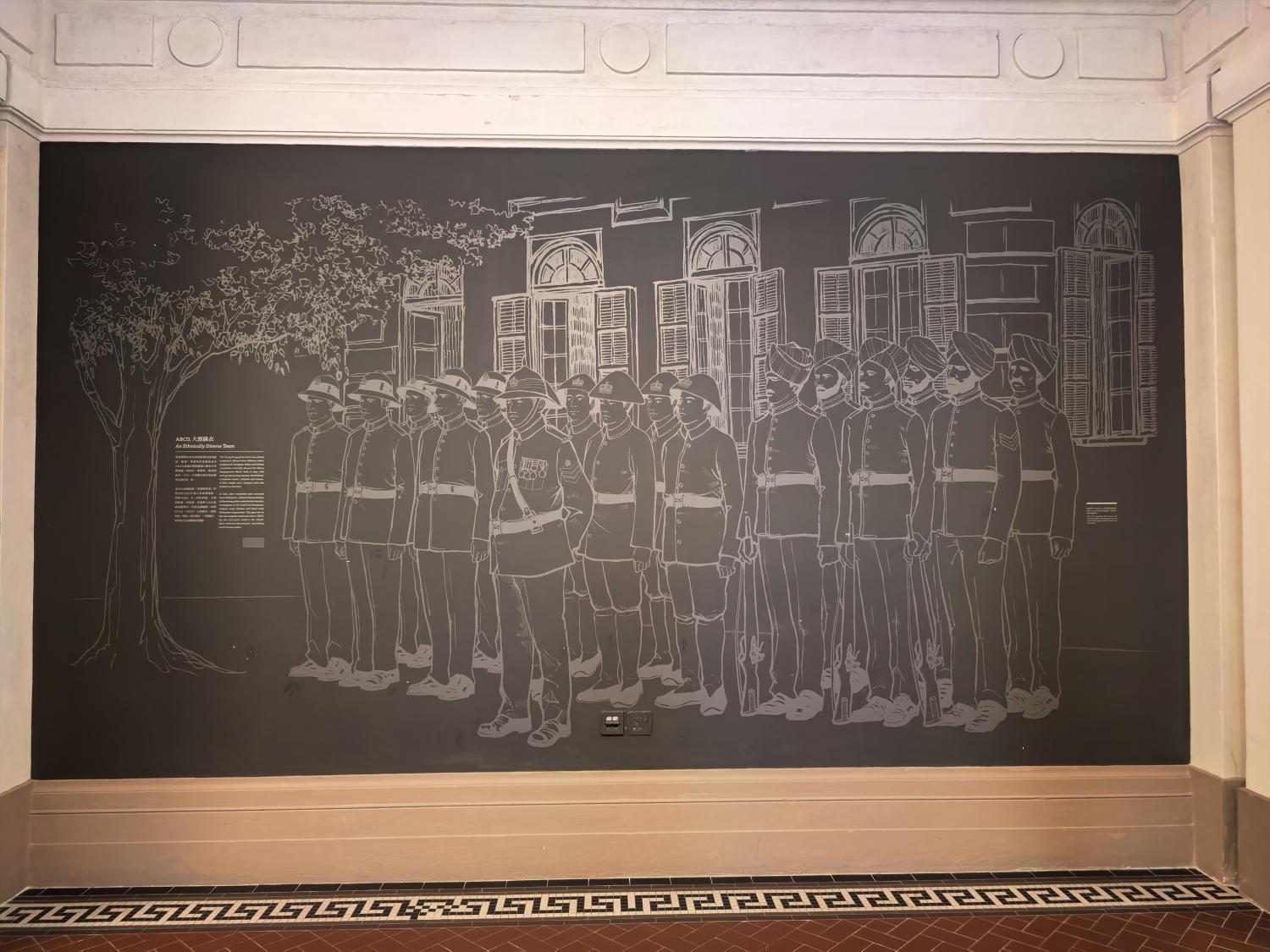 大馆内的一幅历史主题艺术装置,展现了香港早期警察队伍的多元构成。