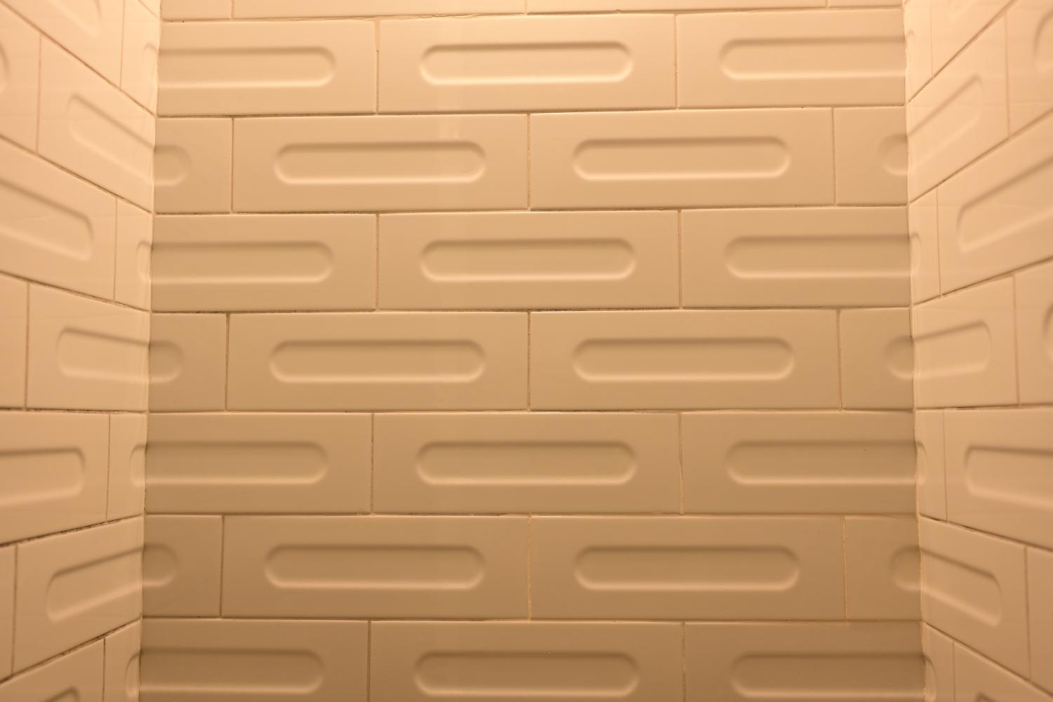 洗手间的地面的墙面砖,也都在呼应着外墙的设计。