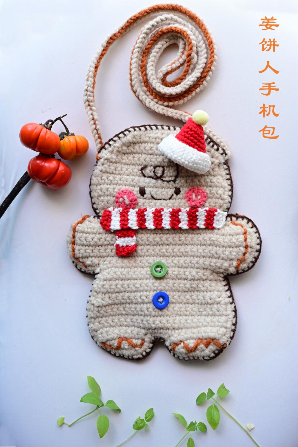 钩针,可以做的有很多,比如圣诞手机包,在袜子、雪人、苹果、姜饼人中,选择了姜饼人。其实每一款都可爱,选择姜饼人,更看中的是整体造型,更规整、实用。