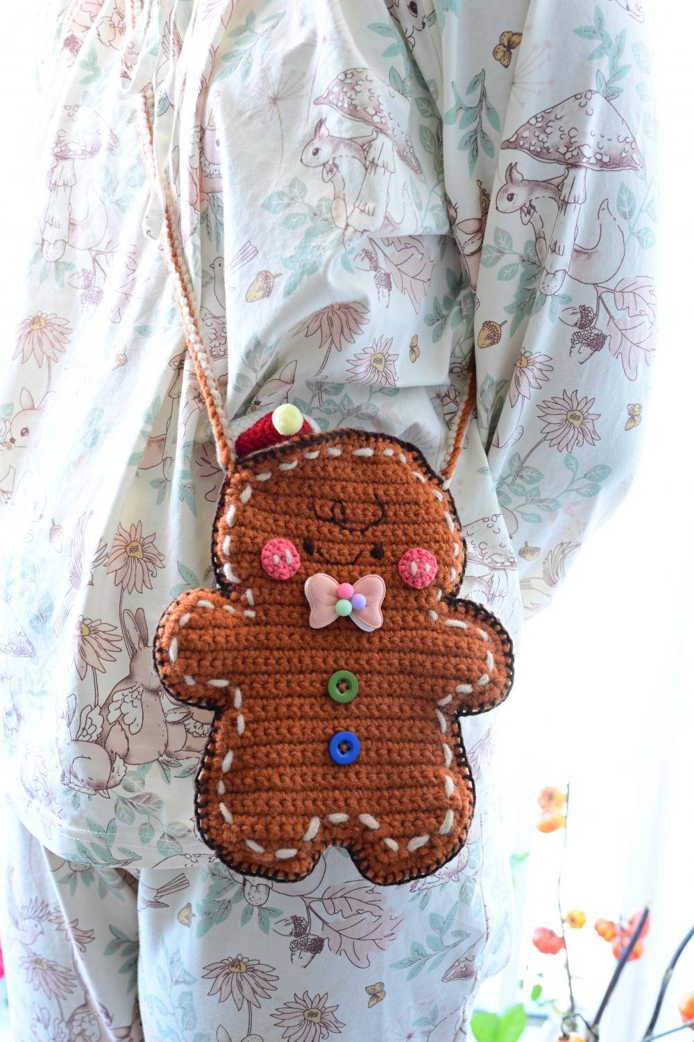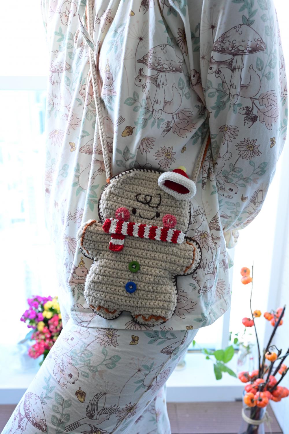 因为手机包的出炉,也是喜欢得很,硬撑着做模特,是姜饼人给予的力气。