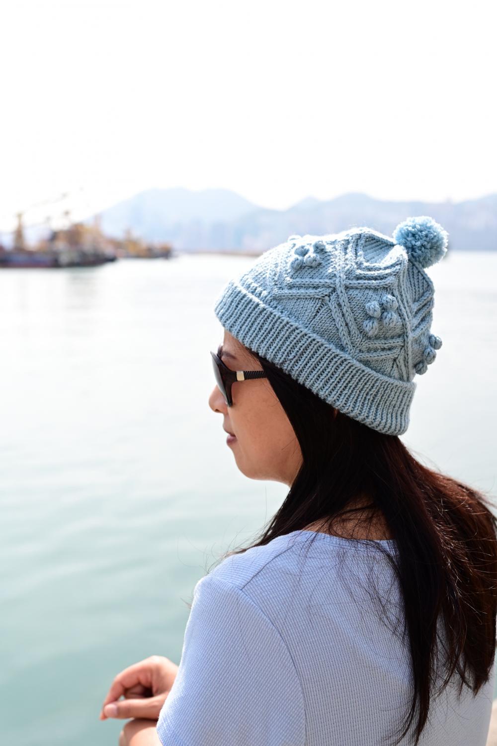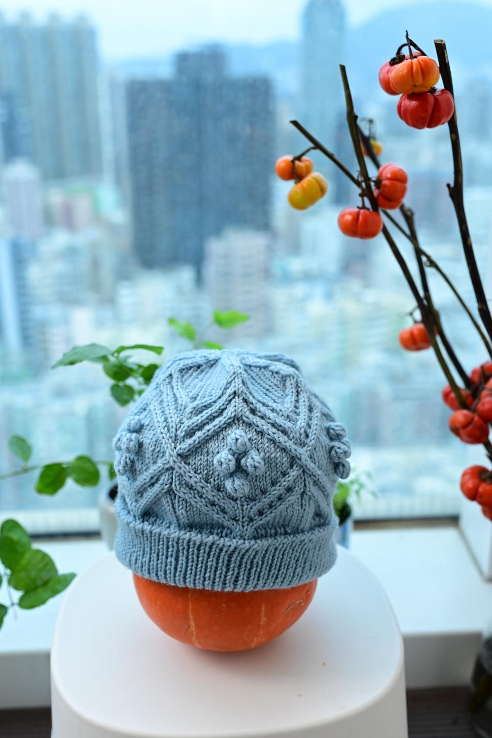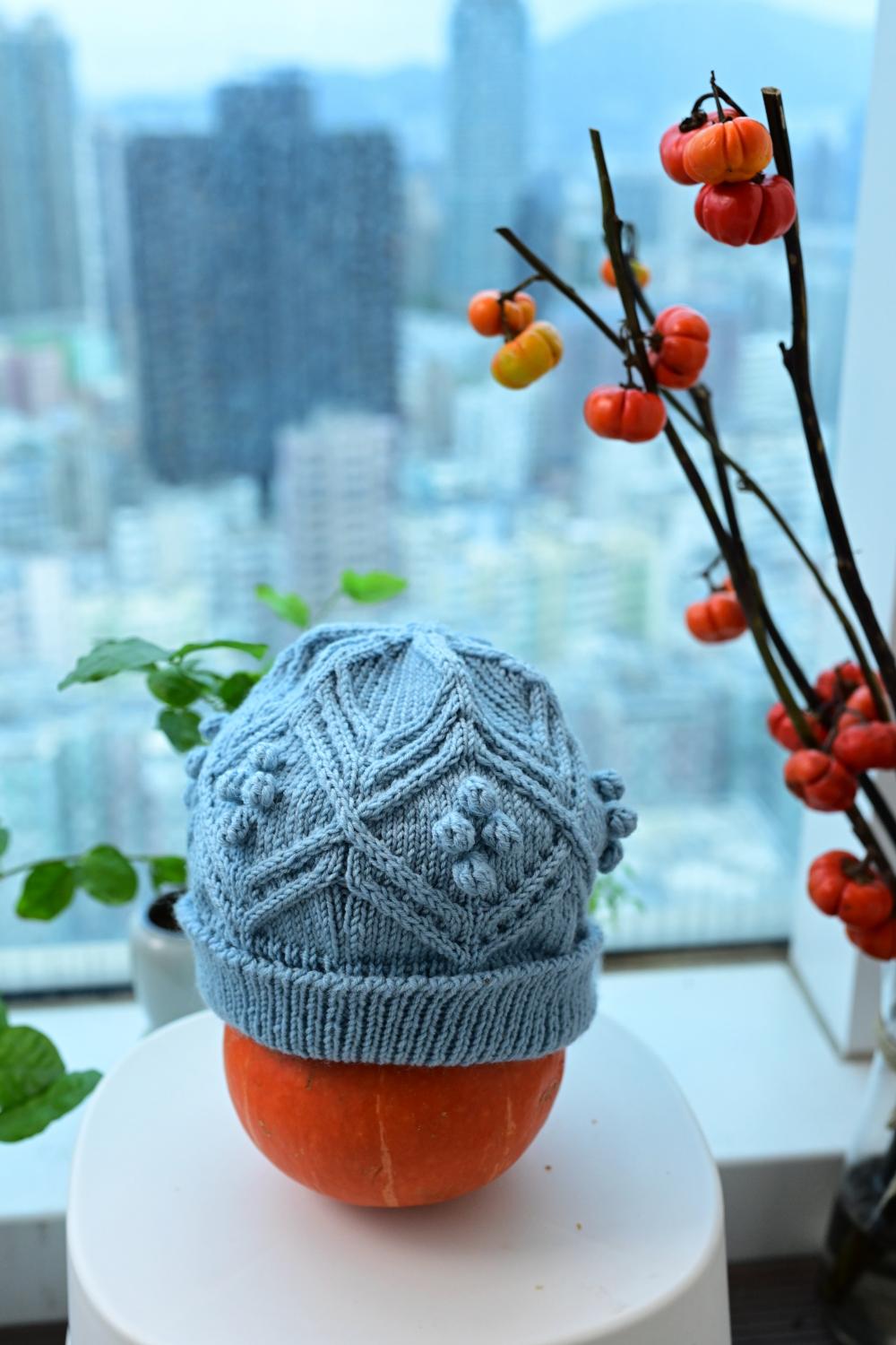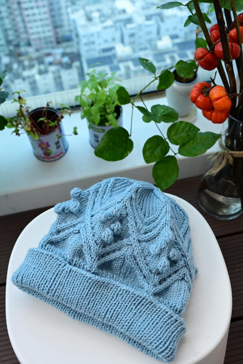 换莫兰迪6#澳洲美利奴羊毛线,奶蓝色,再来钩织一顶同款,还是棒针与钩针打配合。