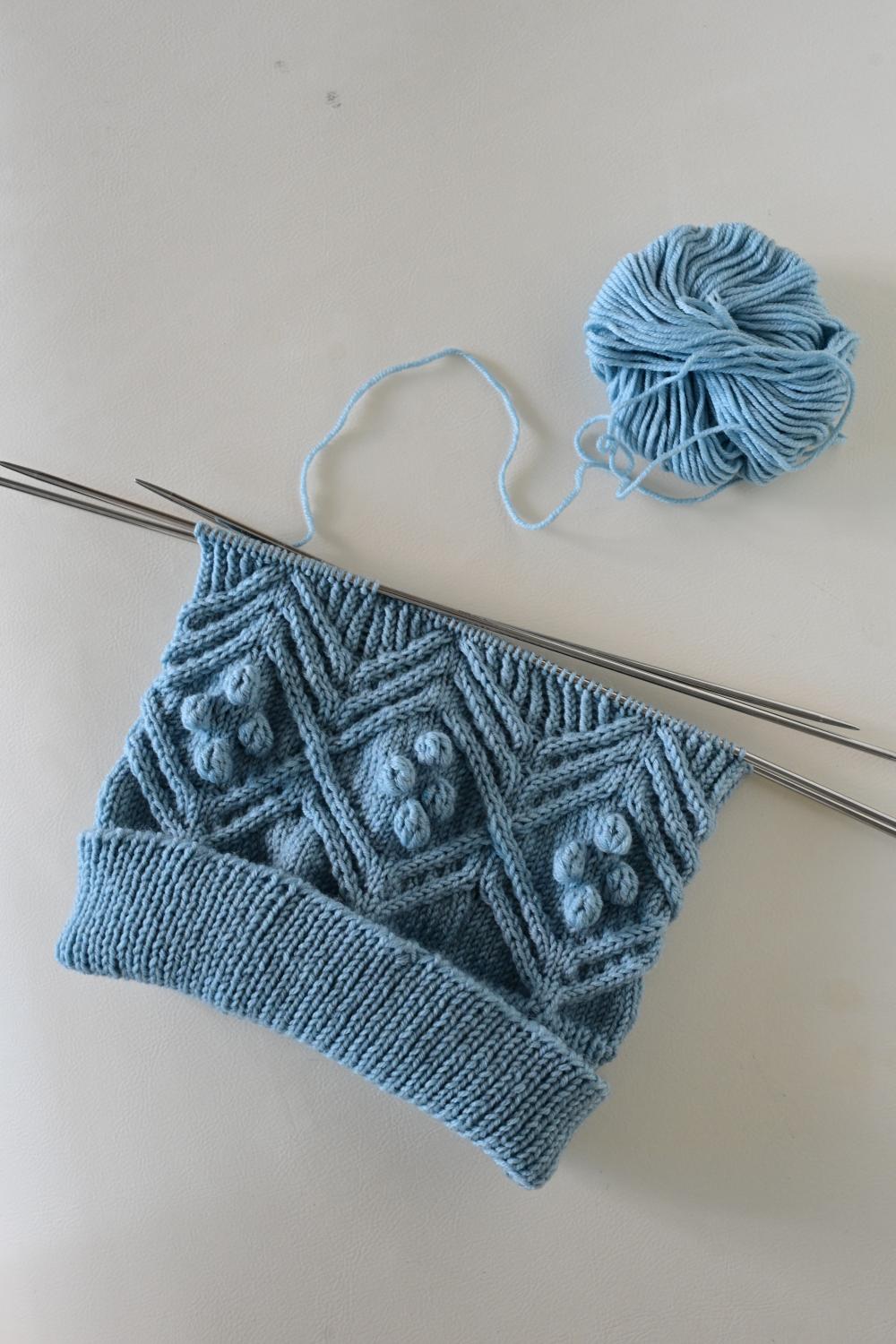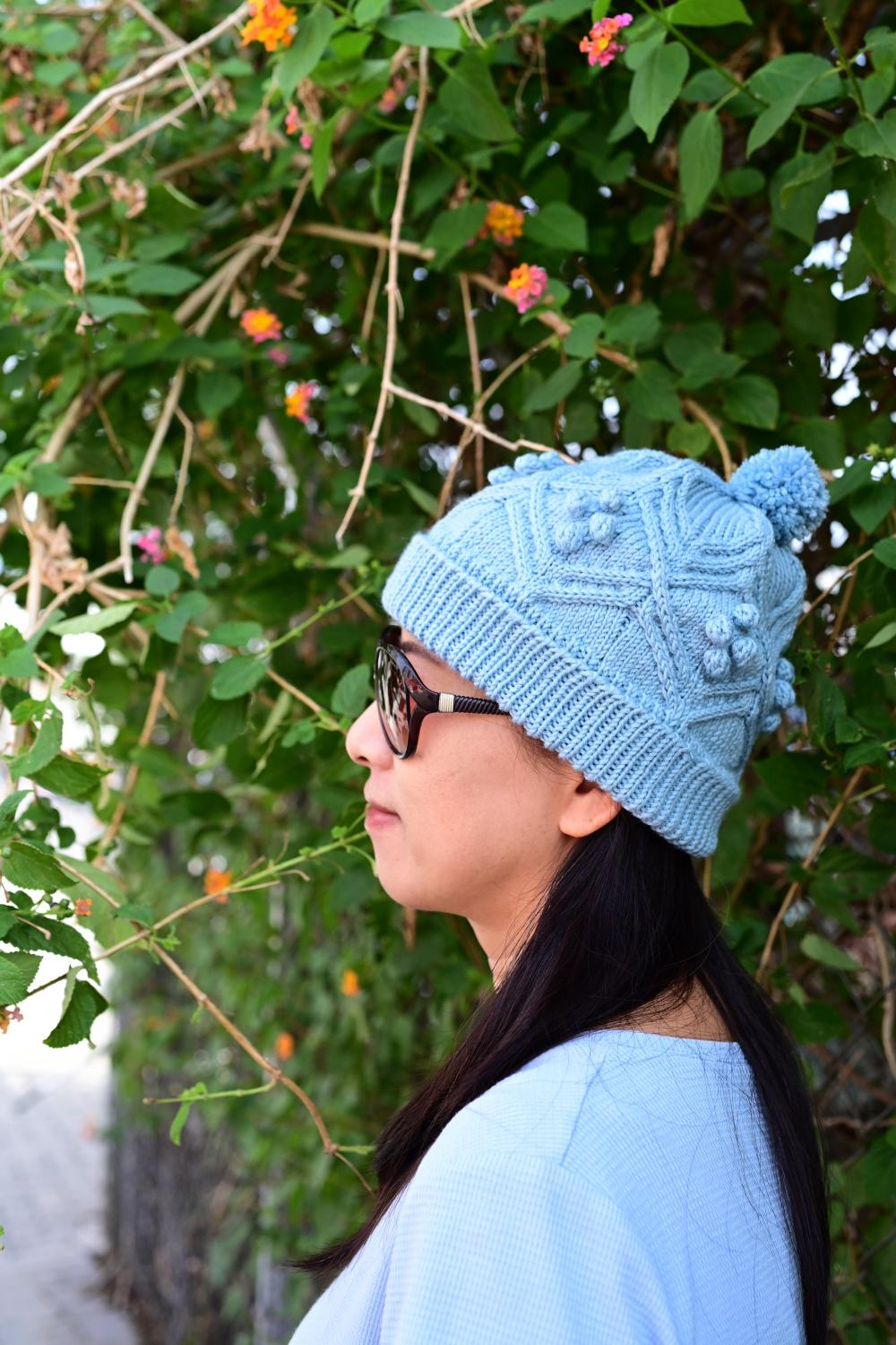 帽子主体用棒针,但豆豆需要钩针配合完成。