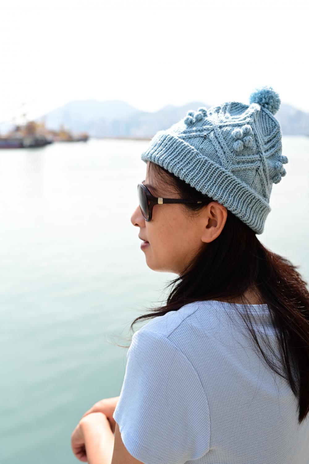 正午的海边,海水的颜色无法在镜头中真实呈现,帽子也是。