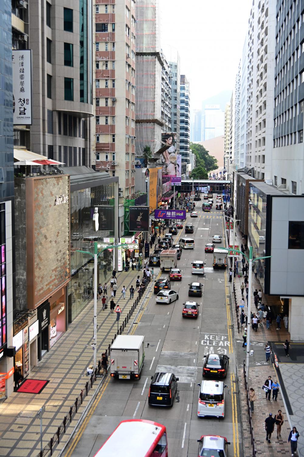 经过高处的天桥,下面就是广东道,九龙尖沙咀区域,香港著名的高端购物街区。之前来,多是以购物者的身份,而这一次显然不同。